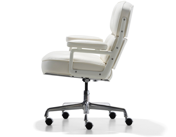 Charles与RayEames夫妇是20世纪最有影响力的设计师,卓越的设计涵盖了家具、建筑、影像与平面设计。他们从二次世界大战中美国海军的实验计画中学习经验并发展可谓是现今工业中使用模铸胶合版的先锋,这对设计界的超级夫妇档自1940年参与了由MOMA举办的有机家具设计大赛,自今已有近百件他们的作品被各大博物馆所永久典藏。 Eames® Soft Pad Side Chair(伊姆斯软包会议椅)是夫妻俩1958年设计的,是在全铝系列的基础上发展的另一系列Eames产品。舒适系列在全铝的椅架上增加了皮革制的柔软坐垫和靠背,高级铝合金制作,压模四星脚,可旋转。背垫和坐垫,采用西皮,具有透气性强,内部填充高密度定型绵,不易变形,不老化,依人体坐姿,符合人体工学,耐水及对人体无害等优势。椅子扶手选用优质电镀铝合金扶手,手感舒适,永久不生锈。转椅底盘为多功能底盘,可以保护使用者长时间坐用腿部健康,且作为高度可多定位调节。气压棒采用的气杆是正规厂家出产的外贸气杆,每一根气杆都有钢印,经过严格SGS检测的才可出厂,旋转、升降自如基本无声响,使用寿命长,可承受250kg,可升降数万次,将椅面调至与膝盖同高时,使用者坐下后双脚跟可垂直平放于地上,且大腿与地面平行,最符合人体工学理论,使用者长期久坐,也不想疲惫。办公椅脚为铝合金材质永久不生锈、承受能力强,安全更放心。椅子脚轮采用优质电镀片脚轮,耐用而美观,可以随意变换位置,贴心更方便,具有防震及防松脱,让椅子的安全性能更加可靠。