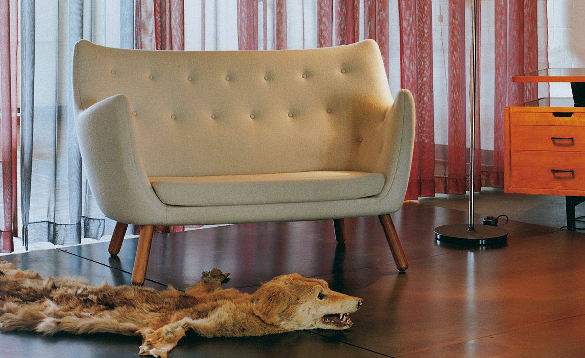 FINN JUHL设计此款沙发用在自己的家中,诗人沙发(1941)设计于位于夏洛滕隆哥本哈根北部的农村地区。Finn juhl作为一个真正的享乐主义者,他设计的家具非常舒适,使用的工艺传统并且显示材料的价值。