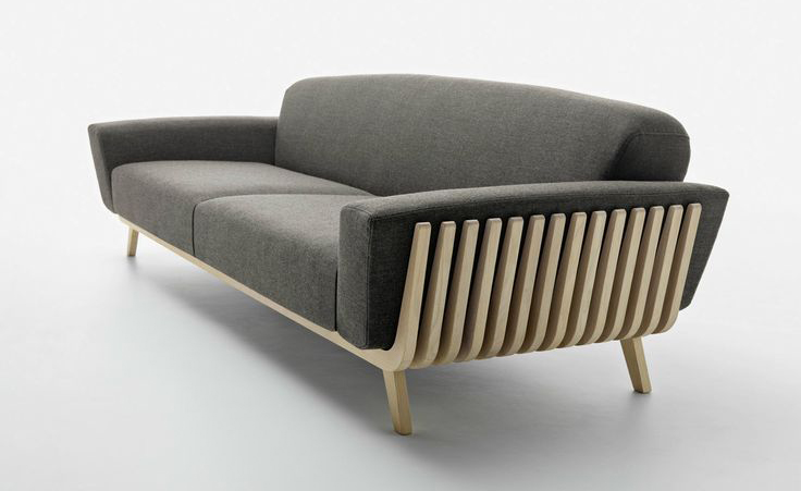 意大利设计师Ezio Riva和Arturo Montanelli推出一款名为Hamper的沙发,这是他们为意大利Passoni Nature公司设计的,产品有两款,分别为:Hamper 1-seater Sofa(Hamper 单座沙发)及Hamper 2-seater Sofa(Hamper 双座沙发)。其主要材质选用了实木作为整个家具产品的主要部分,其设计灵感来源于北欧风格,简约大气。Hamper沙发外部可见的框架由十四根实木板条平行组成,形成了一个类似篮子的形状。整个家具的结构构成有软垫座椅、靠背和扶手,淡灰色调的厚实坐垫极其柔软舒适,天然木质的承压框架散发着大自然的亲切气息,两者搭配和谐,相得益彰。Hamper沙发作为一个极简主义风格的家具设计方案,有着强烈的视觉冲击力。
