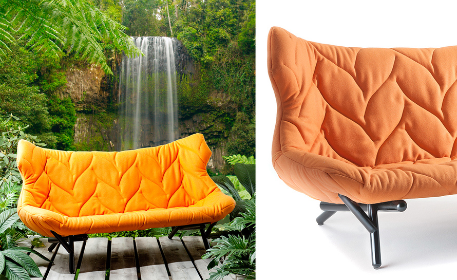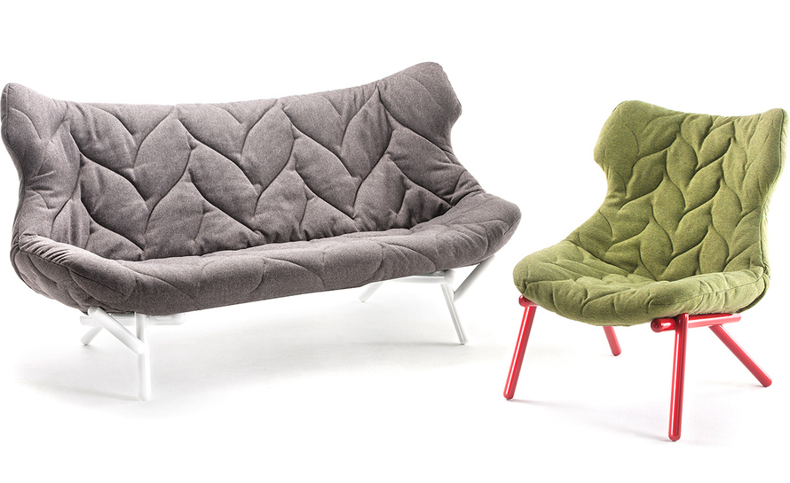 在西班牙鬼才设计师Patricia Urquiola的工作与美学中,大自然与人造是不变的主题,树叶沙发系列很好的表现了她的价值观,柔软的座椅,树叶造型,体现着生态与环保,尤其适合家庭使用。这套家具有单座或者双座,造型非常自然生态︰ 图漆金属框架,舒适的座位,树叶造型缝线,时刻让人联想到一棵枝繁叶茂树。椅面才有舒适的布料或者纤维织物和羊毛混纺,椅脚为环氧树脂喷漆铁管。通过活泼的色彩革新的材料,精湛的缝纫工艺完成了一把具有很高潜在表现力的椅子。