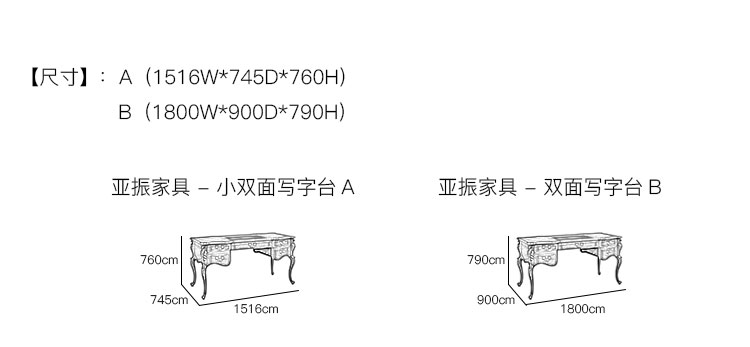 亚振家具 - 双面写字台 产品尺寸/示意图