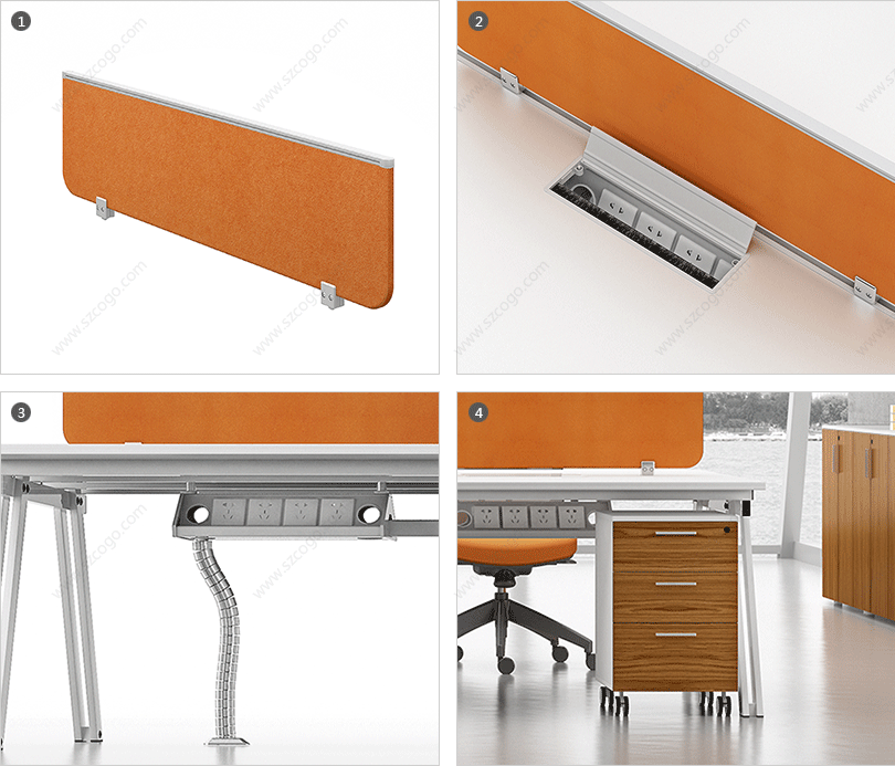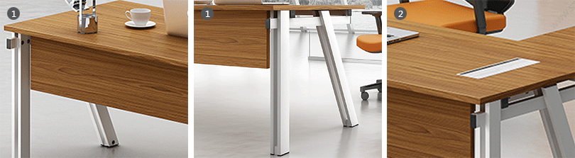1、钢制脚架,实用高端大气; 2、整齐划一、人性方便的桌面铝合金过线系统。 |