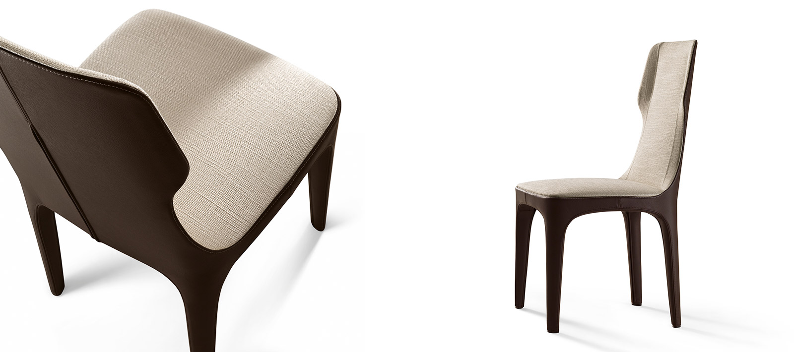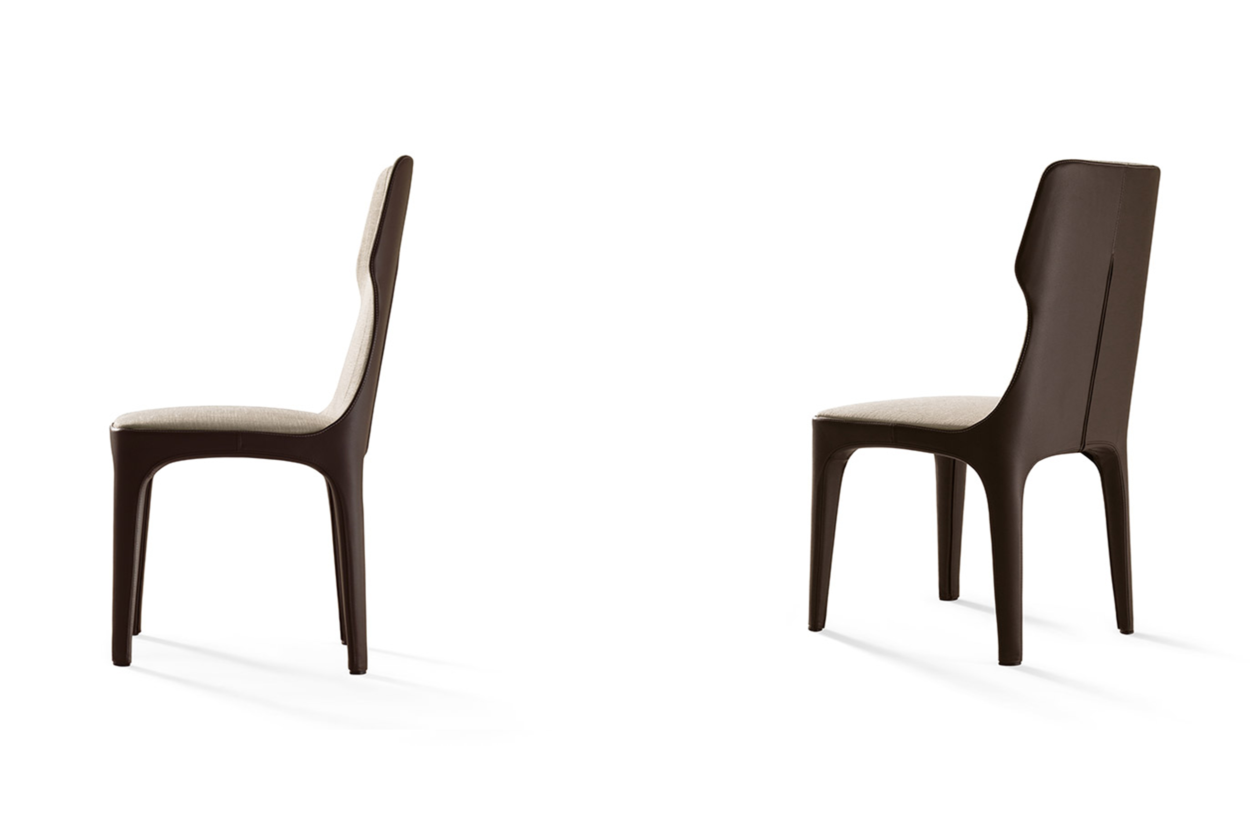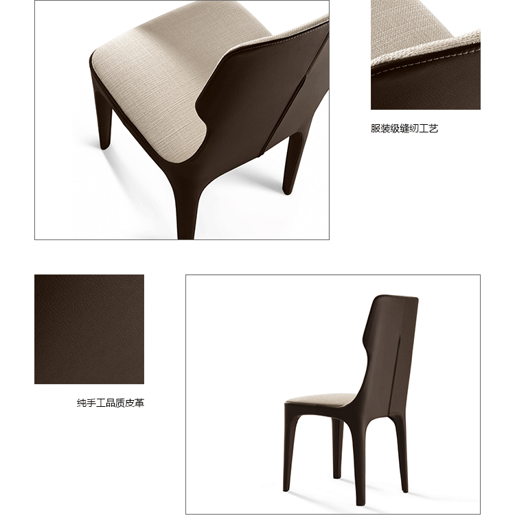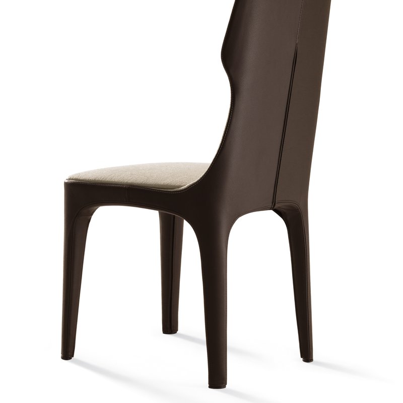 椅子的结构型钢和coldfoamed聚氨酯覆盖纤维填料。室内装饰,织物或皮革,完全是可移动的,是一种在一个颜色或两种颜色与外侧、皮革和皮革或织物内部的一腿。脚盖是黑色聚氯乙烯。