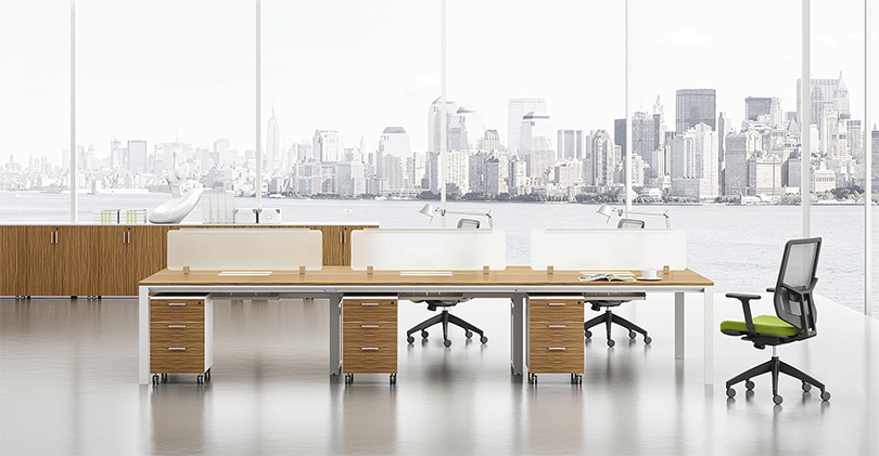| 移动柜,可带软包方便沟通时使用,小家具,大用途 | 桌子搭配文件柜,更大的储物空间 |