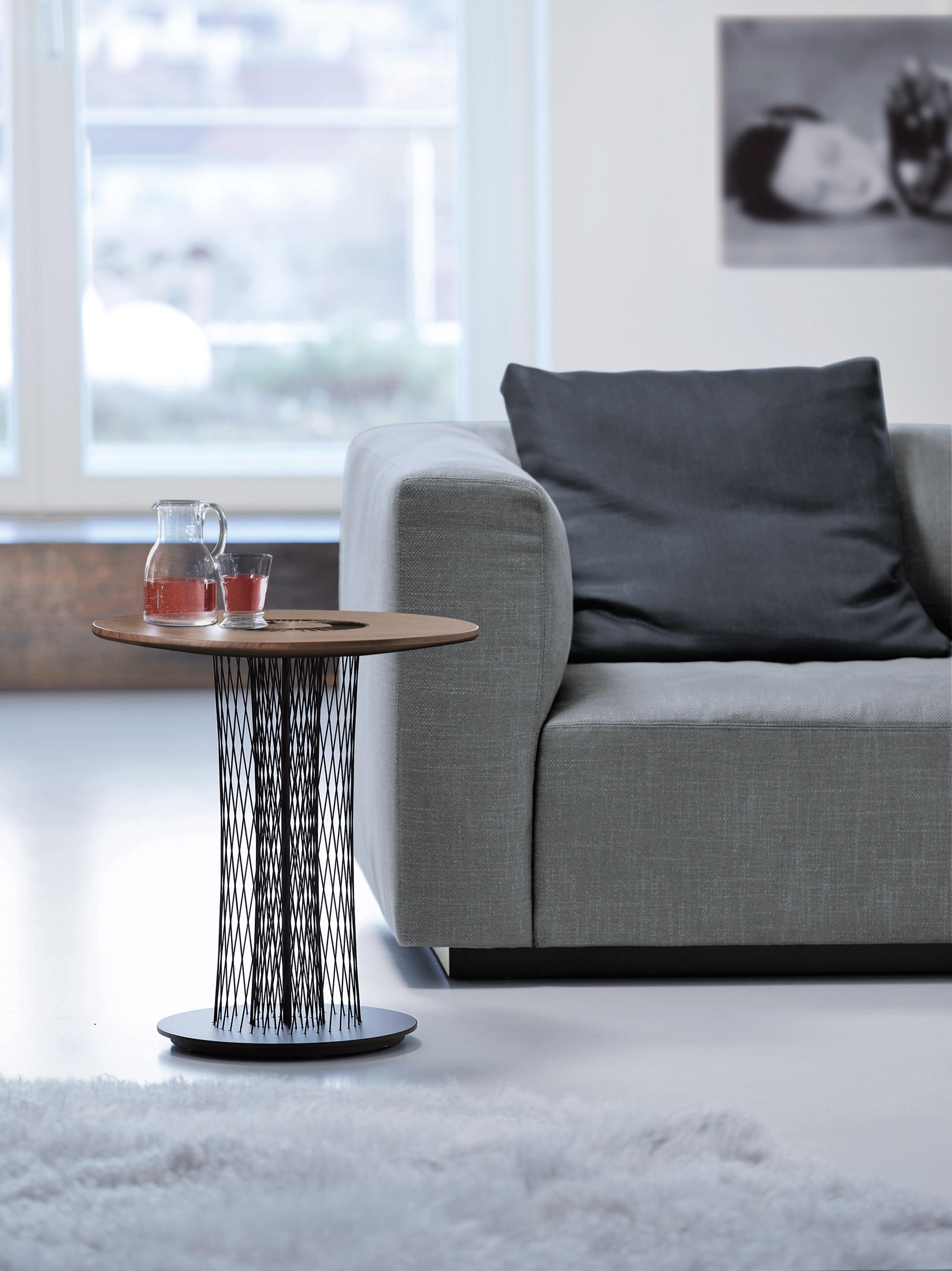 往往是小细节造成了差异,Vladi展示着轻盈与张力的平衡。桌面漂浮在精致的网格之上,翩若惊鸿。纤细的中央轴保证了桌子的稳定性,力量与精美相得益彰。