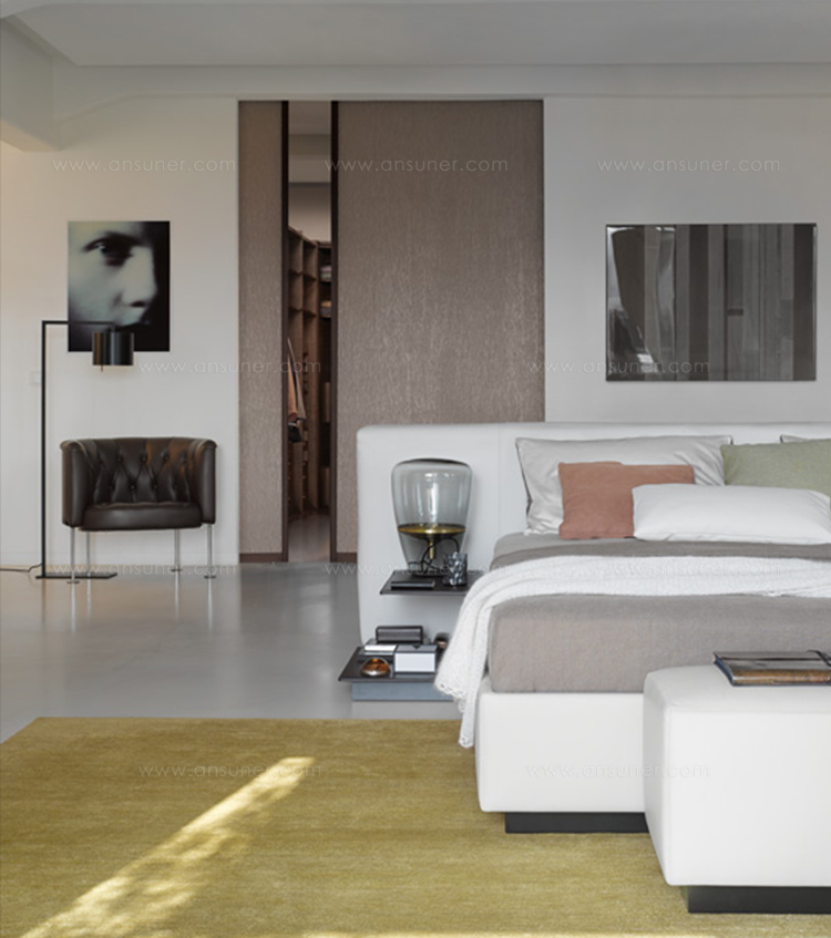 好的设计源于好的思路,Yuuto就是这样。这个软垫穿展示你睡觉的地方,自由的在一个房间里,它容纳了现代生活,为我们的衣橱、浴室、全景、为我们的私人生活的意思提供灵活的各种可能。一张软垫穿,宽敞的设计用料讲究。感觉和纯粹的美丽。