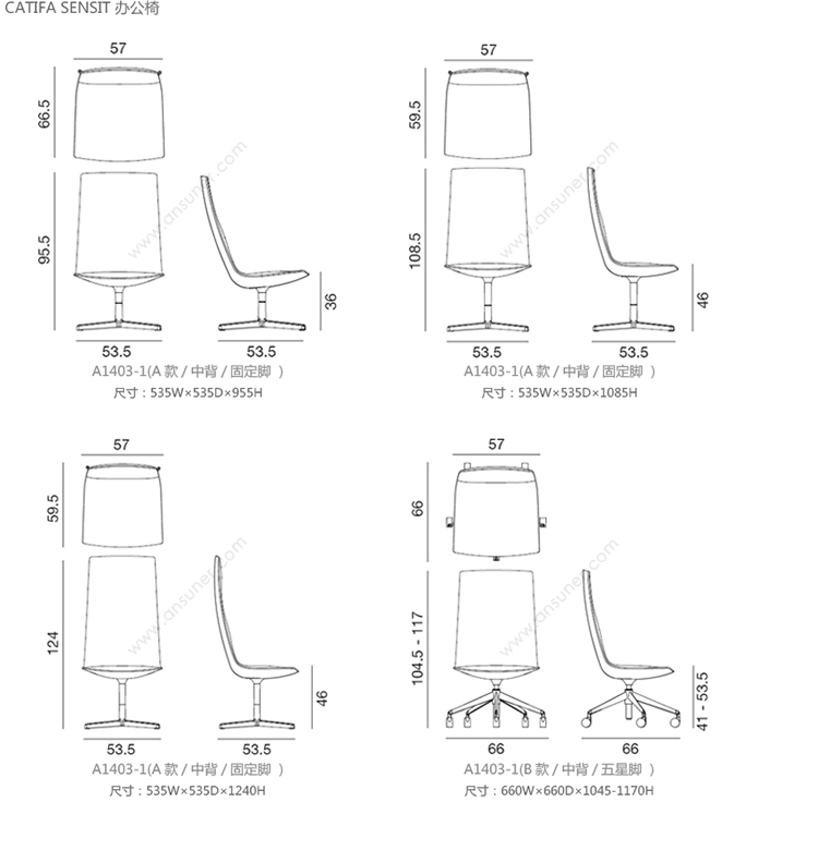 Catifa Sensit 办公椅 系列尺寸/示意图
