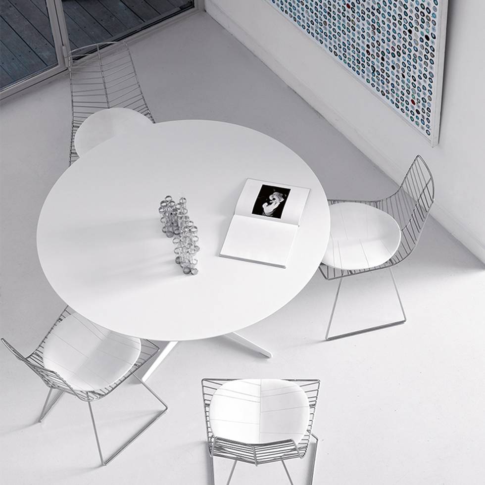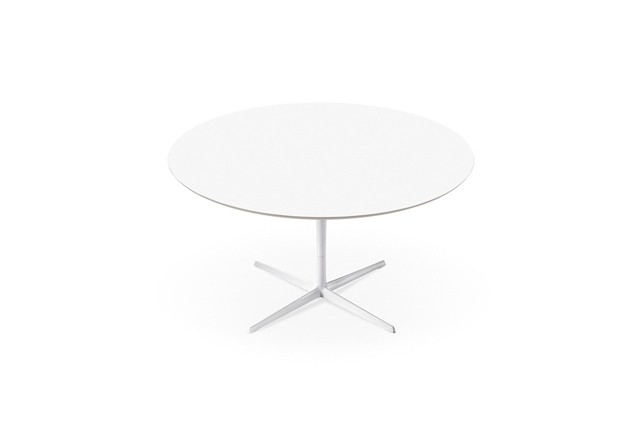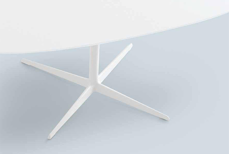 带粉末涂层铝制4向底座和顶部的桌子,白色压花MDF(厚2.5 cm)或层压Fenix(厚2.6 cm)。身高:74厘米。