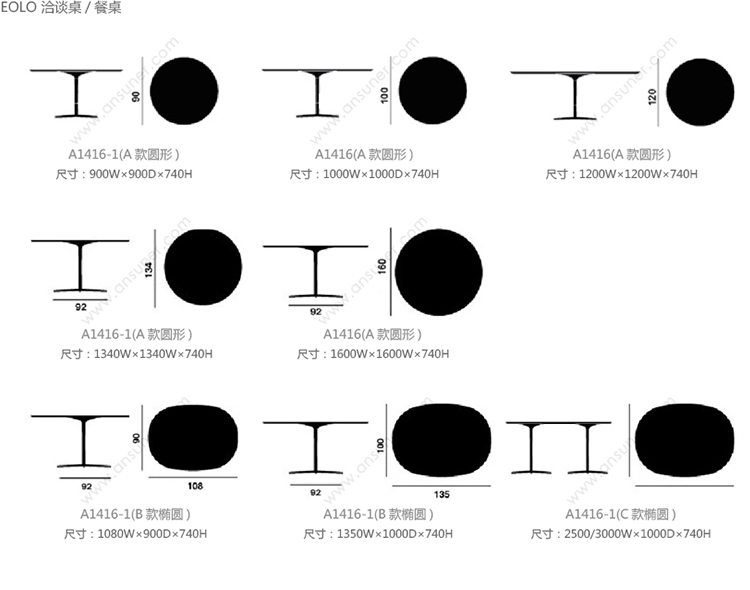 Eolo 洽谈桌/餐桌 系列尺寸/示意图