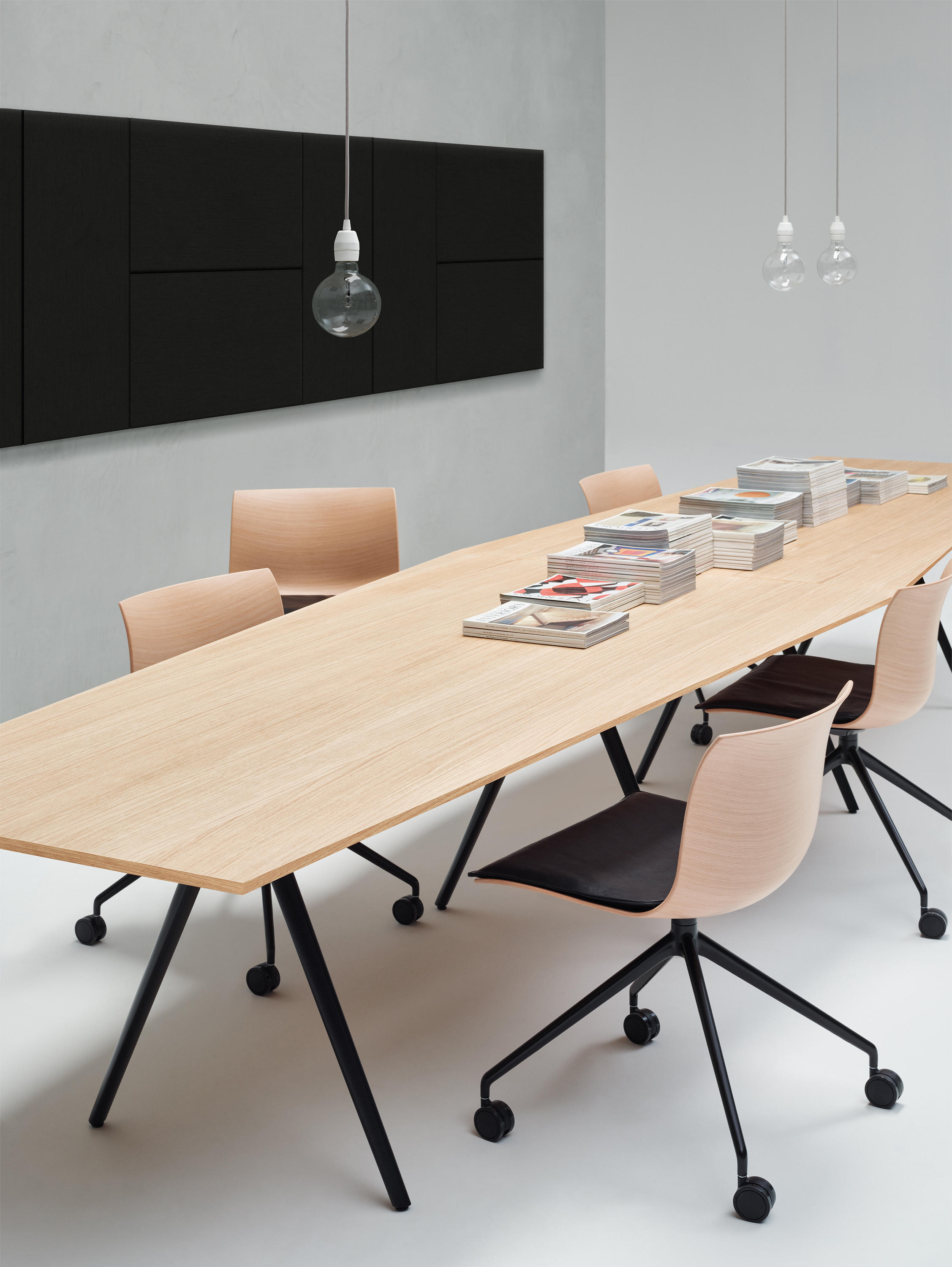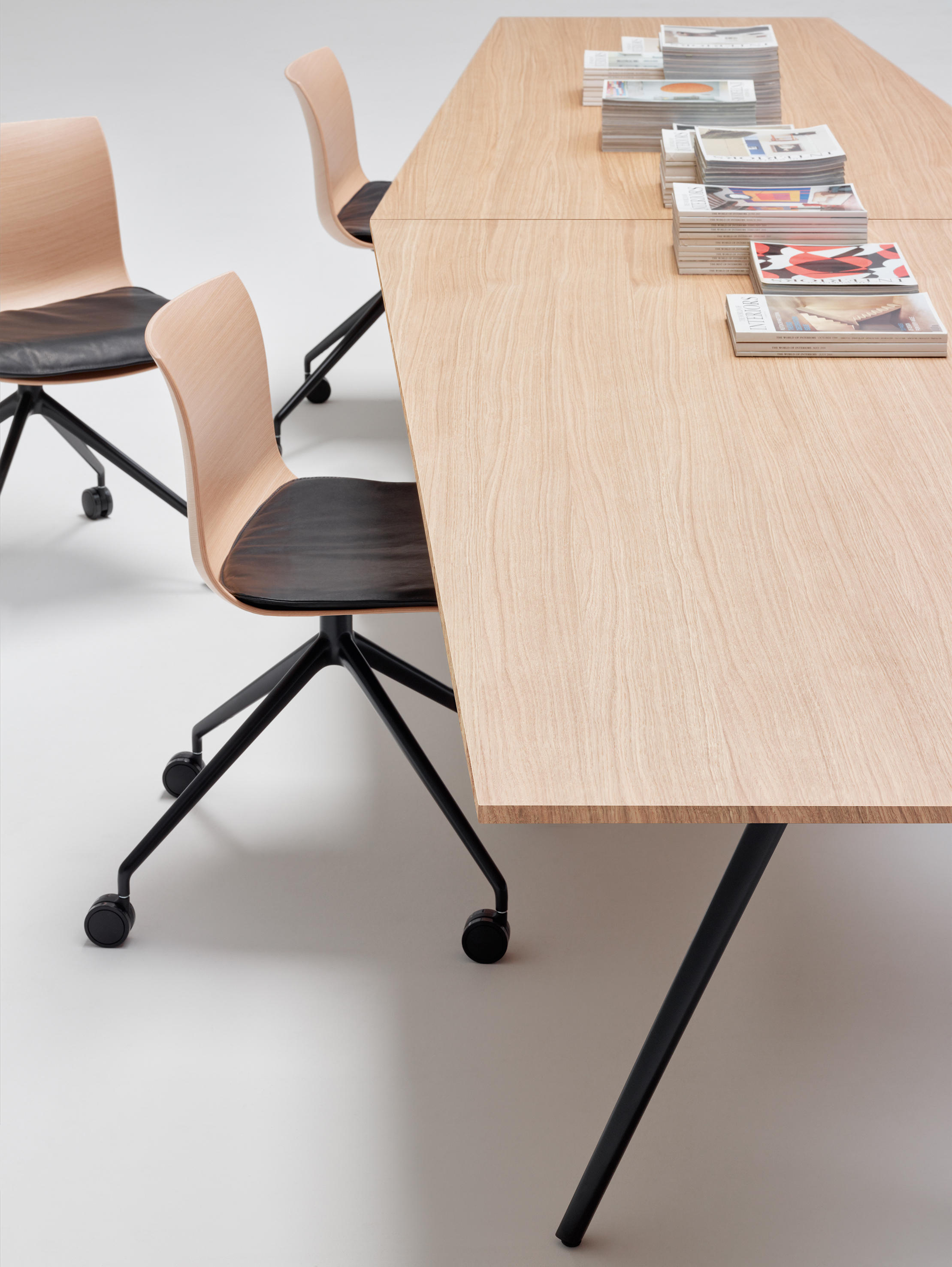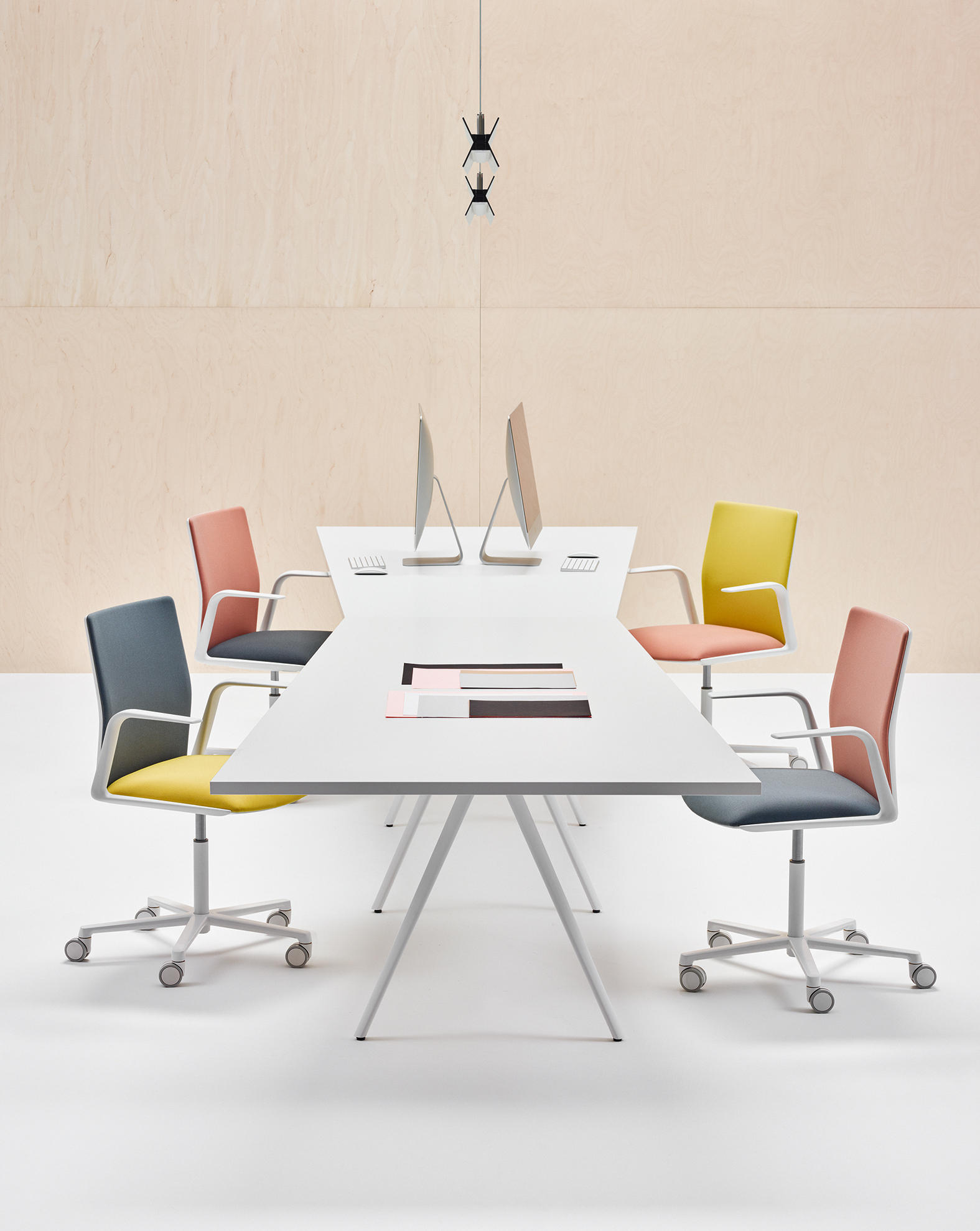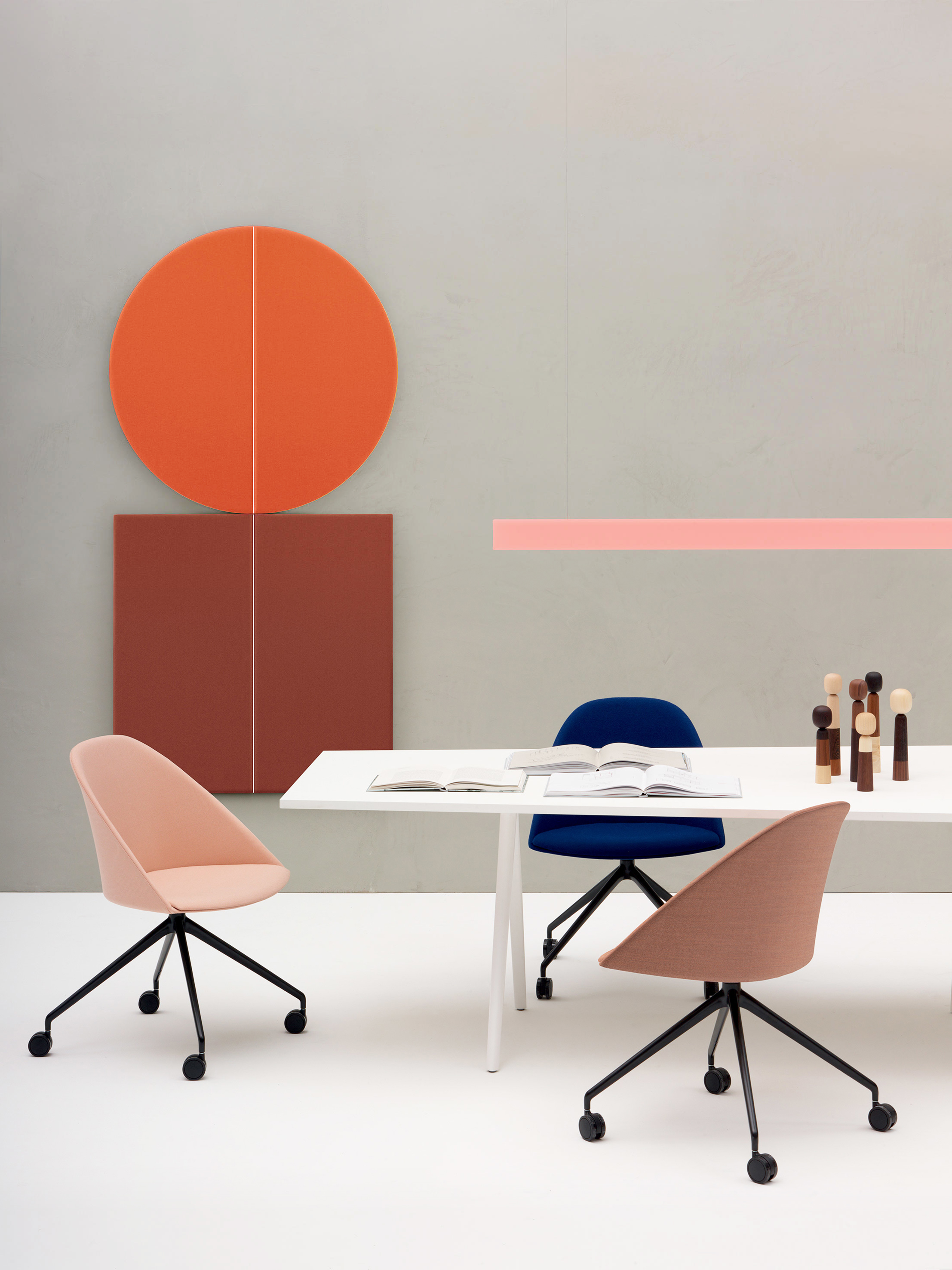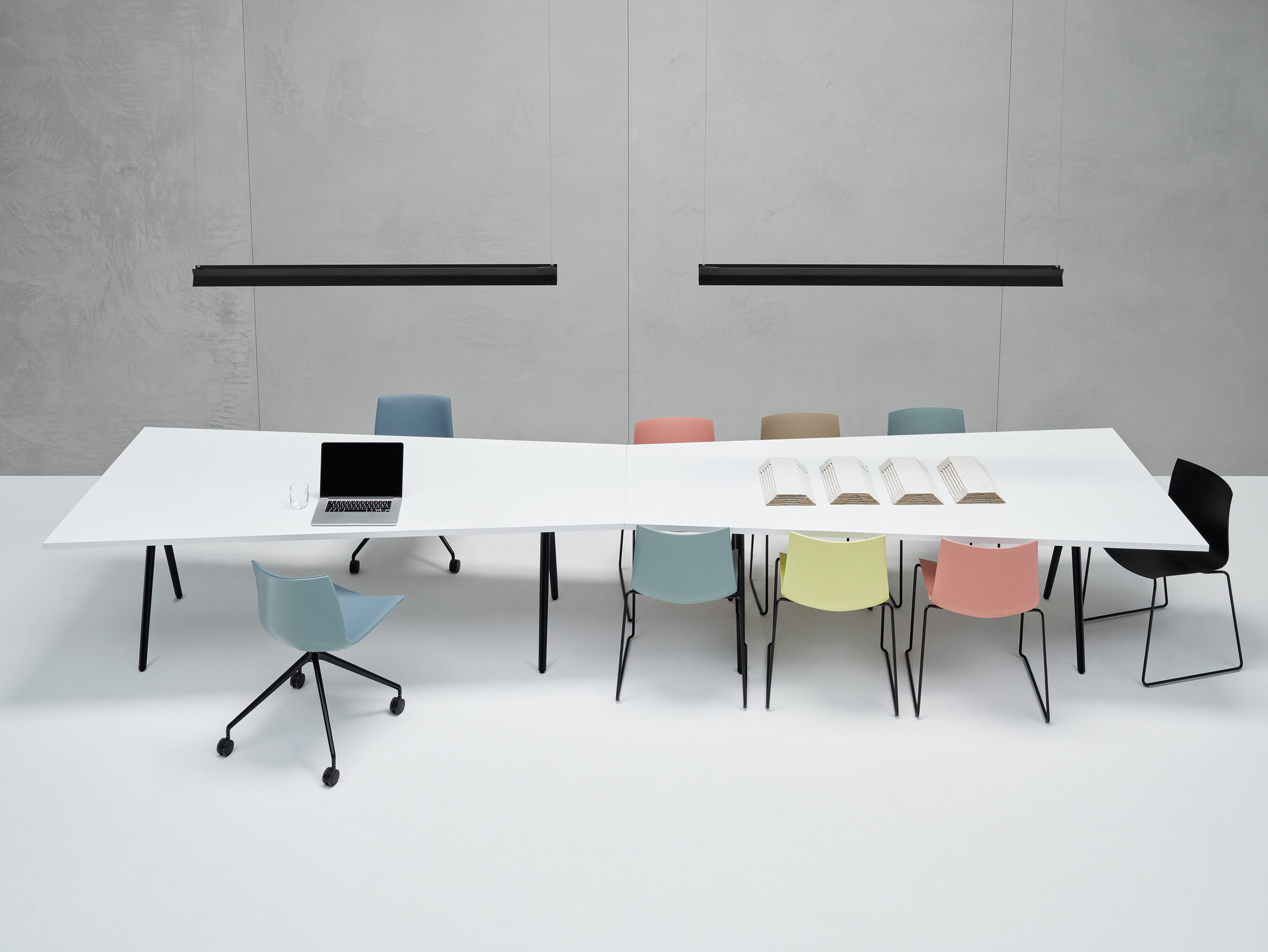 Meety系统可广泛定制,具有桌面形状选项,以及从层压MDF到FENIXNTM®,从木材到玻璃的各种材料。圆形(直径120厘米),正方形(120X120厘米)和矩形形状(从70X140厘米开始)被设想用于大型座椅环境,而柔软和流动的肥皂形状具有独特的存在感和吸引力。创建梯形桌面形状是为了响应协作工作环境,并且可以组合成不同的配置以在工作场所创建私人空间或开放性。