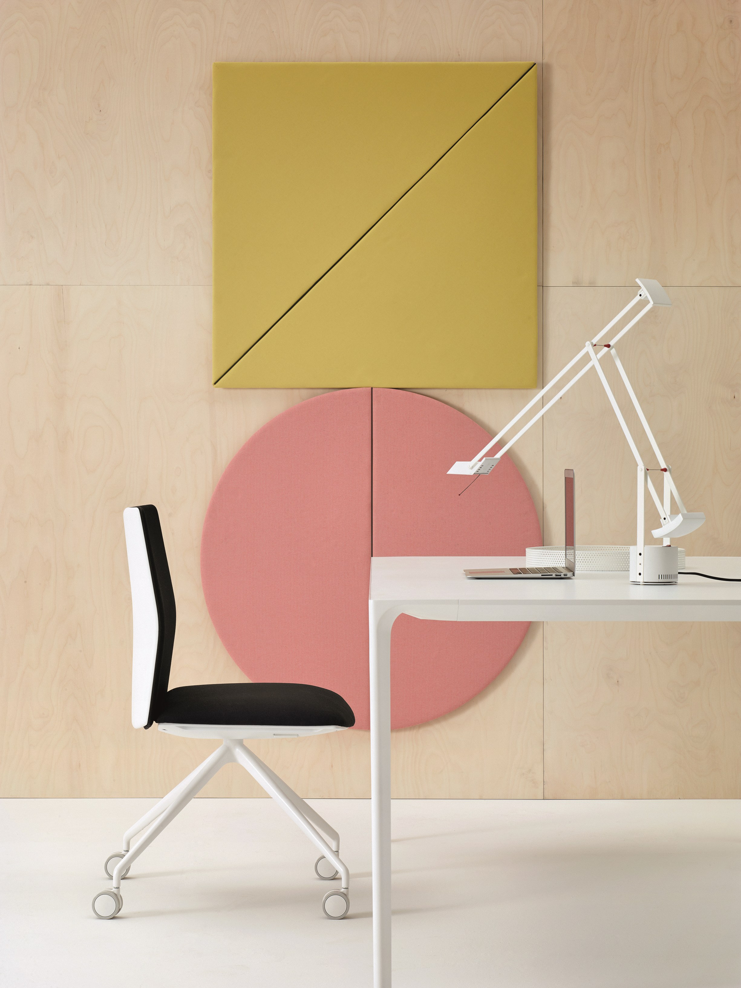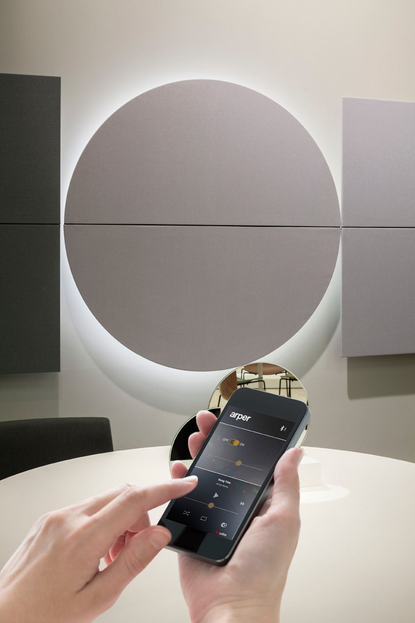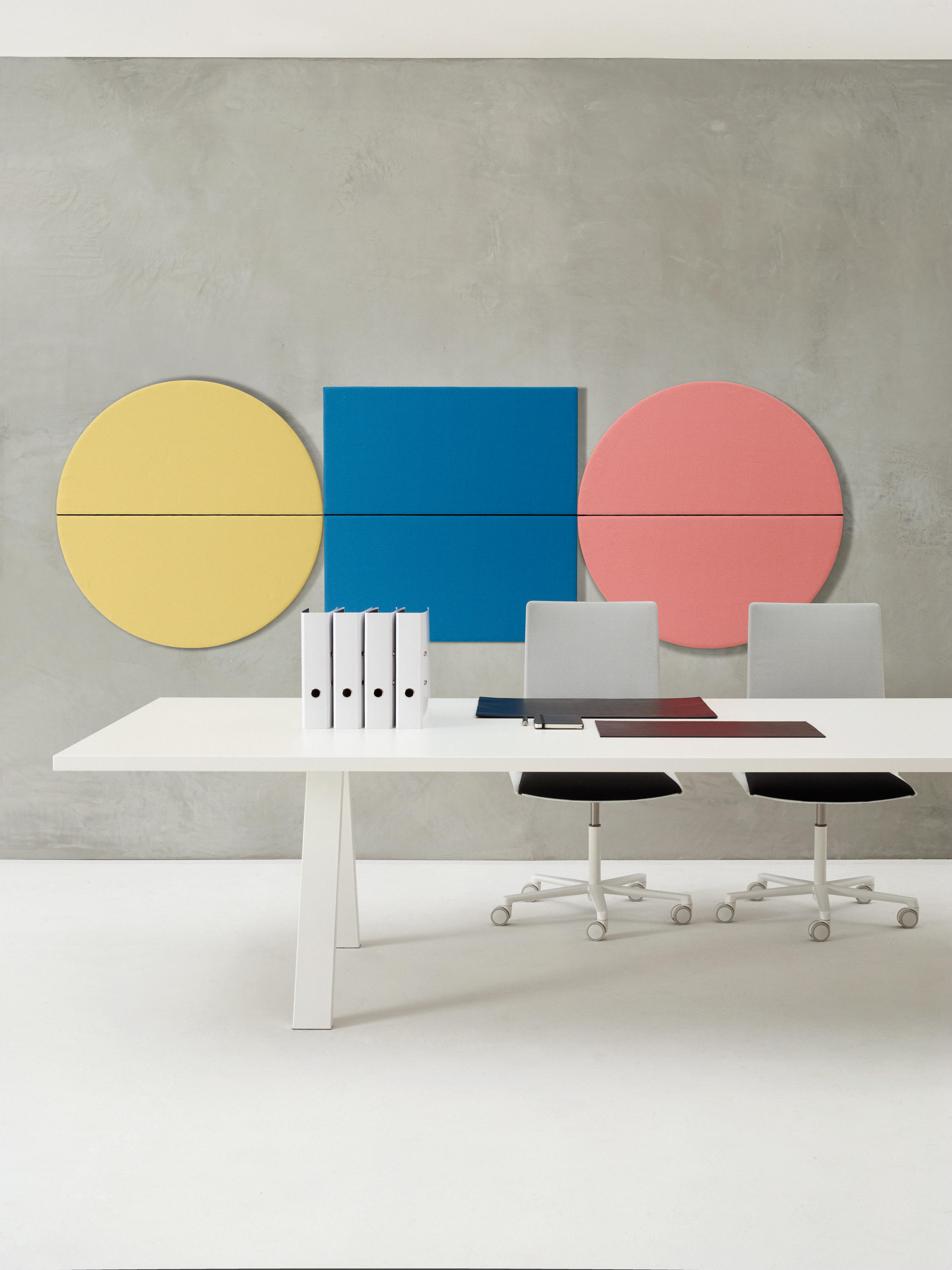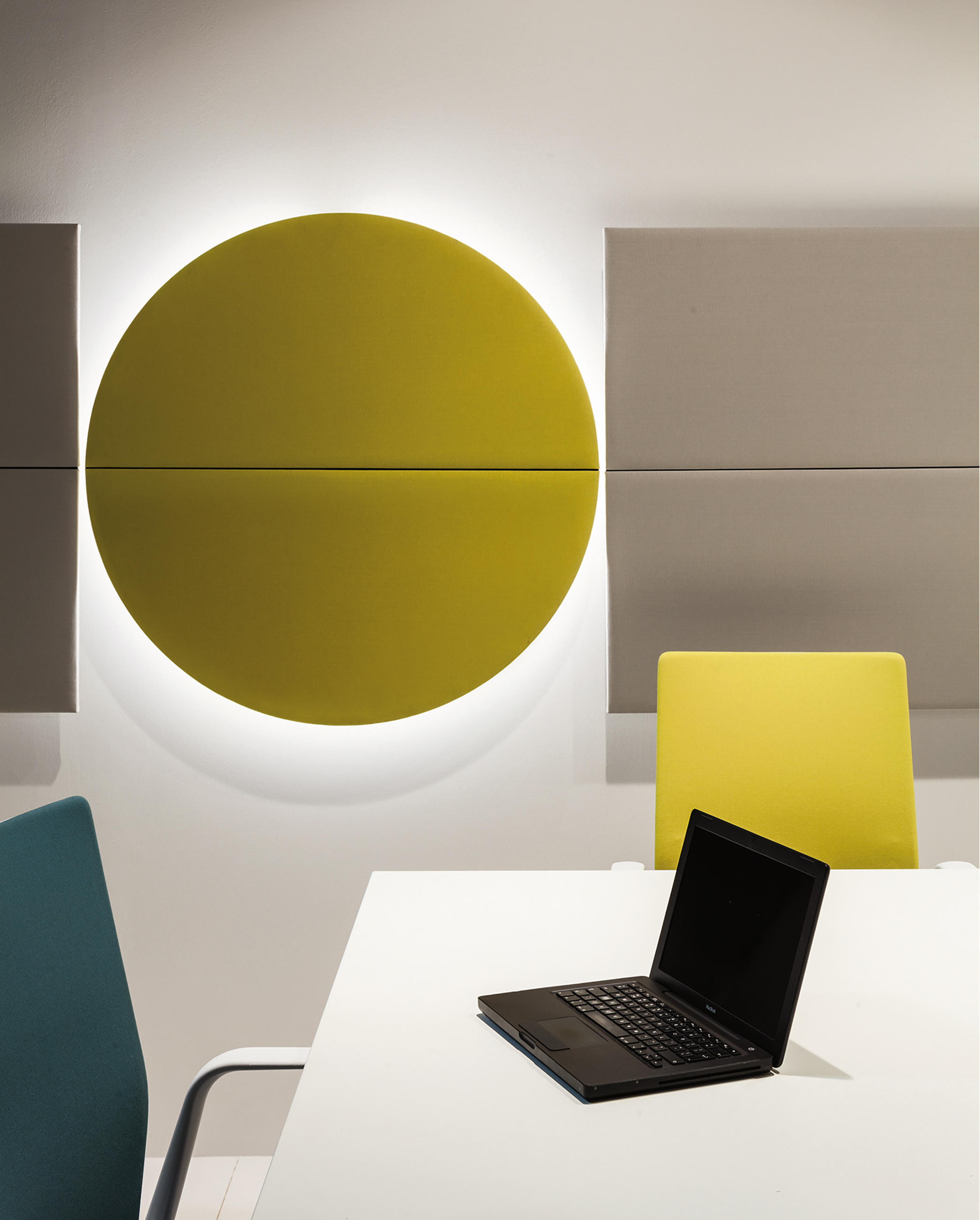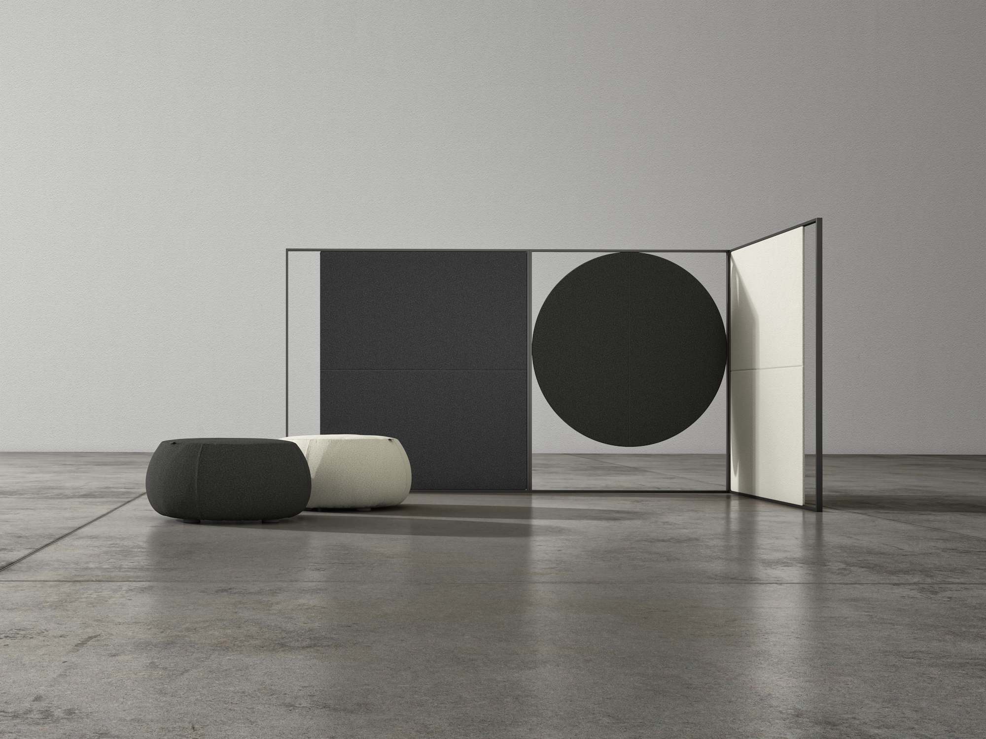 Parentesit是一个装饰模块墙板的集合,为当代共享空间提供舒适。粗体的图形形式有三种形状——圆形、正方形或椭圆形——可以通过添加扬声器或环境光进一步定制,以创建既实用又现代的视觉元素。该系列现在由独立版本补充,这是一个模块化的独立系统,用于在共享的工作空间或协作环境中进行集中注意力或安静对话。