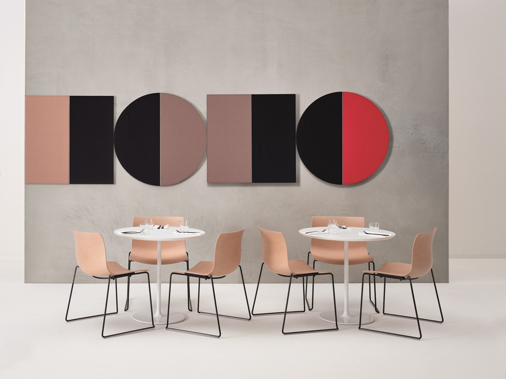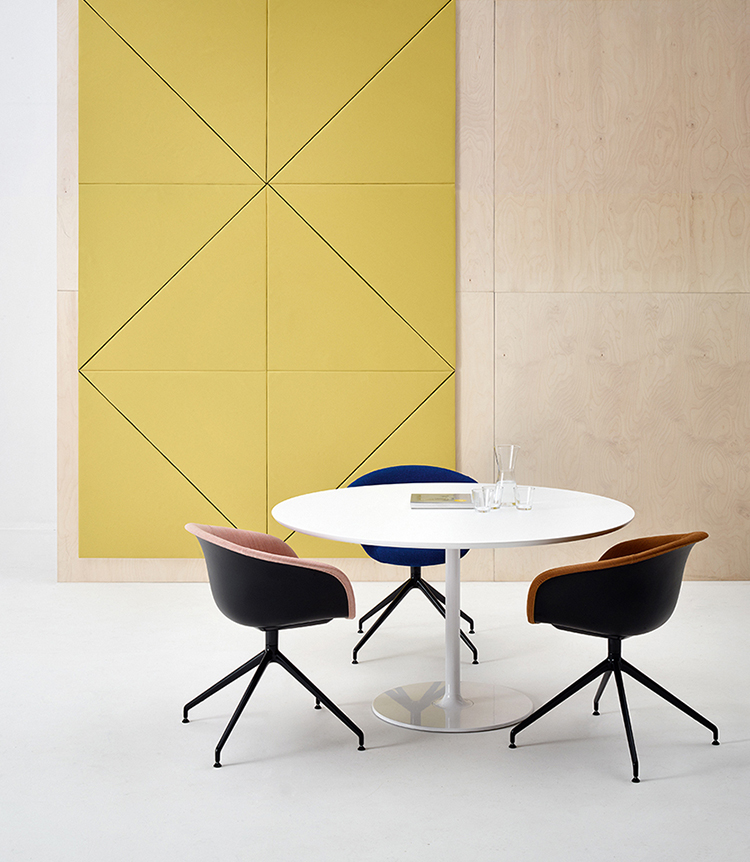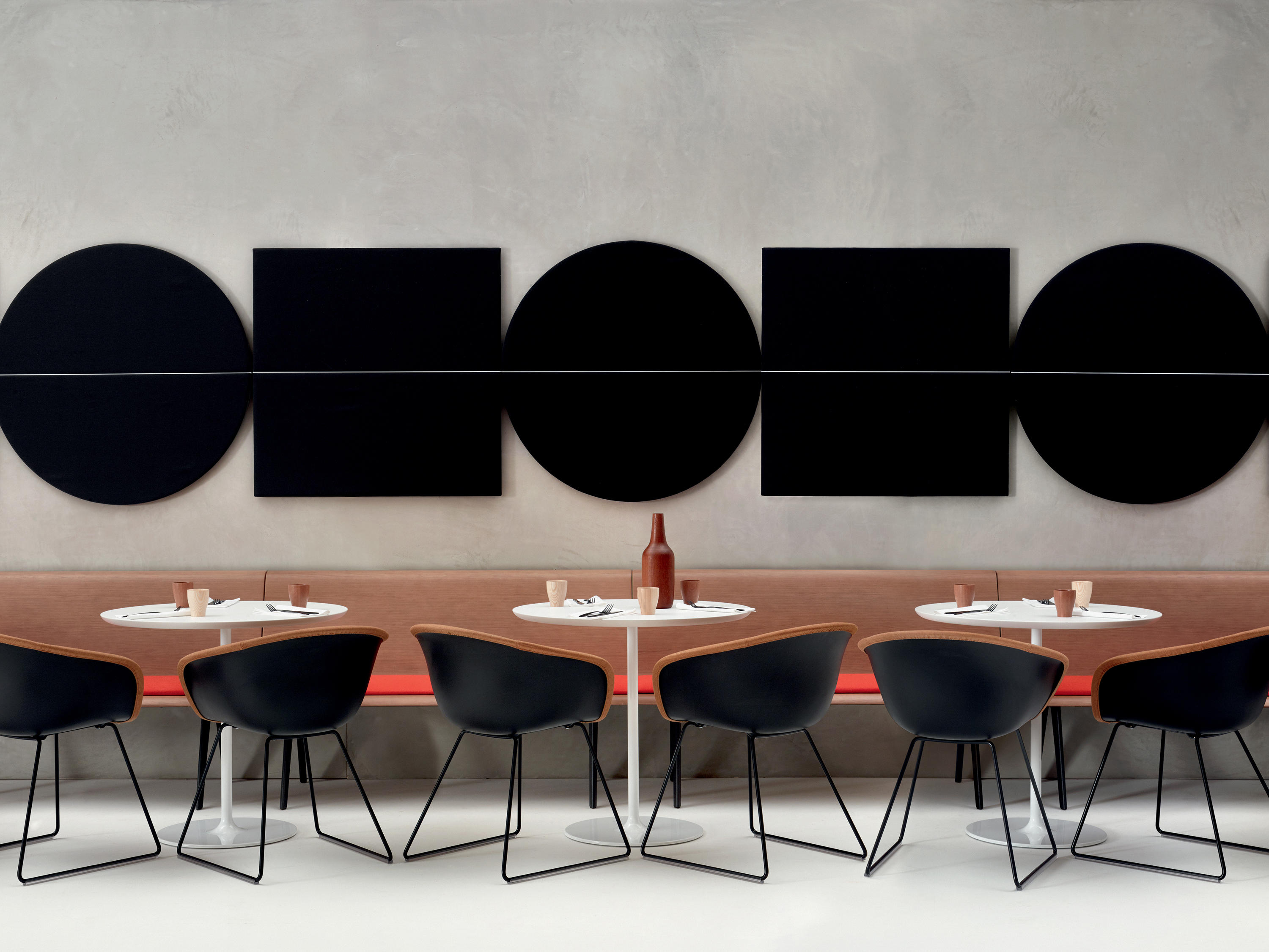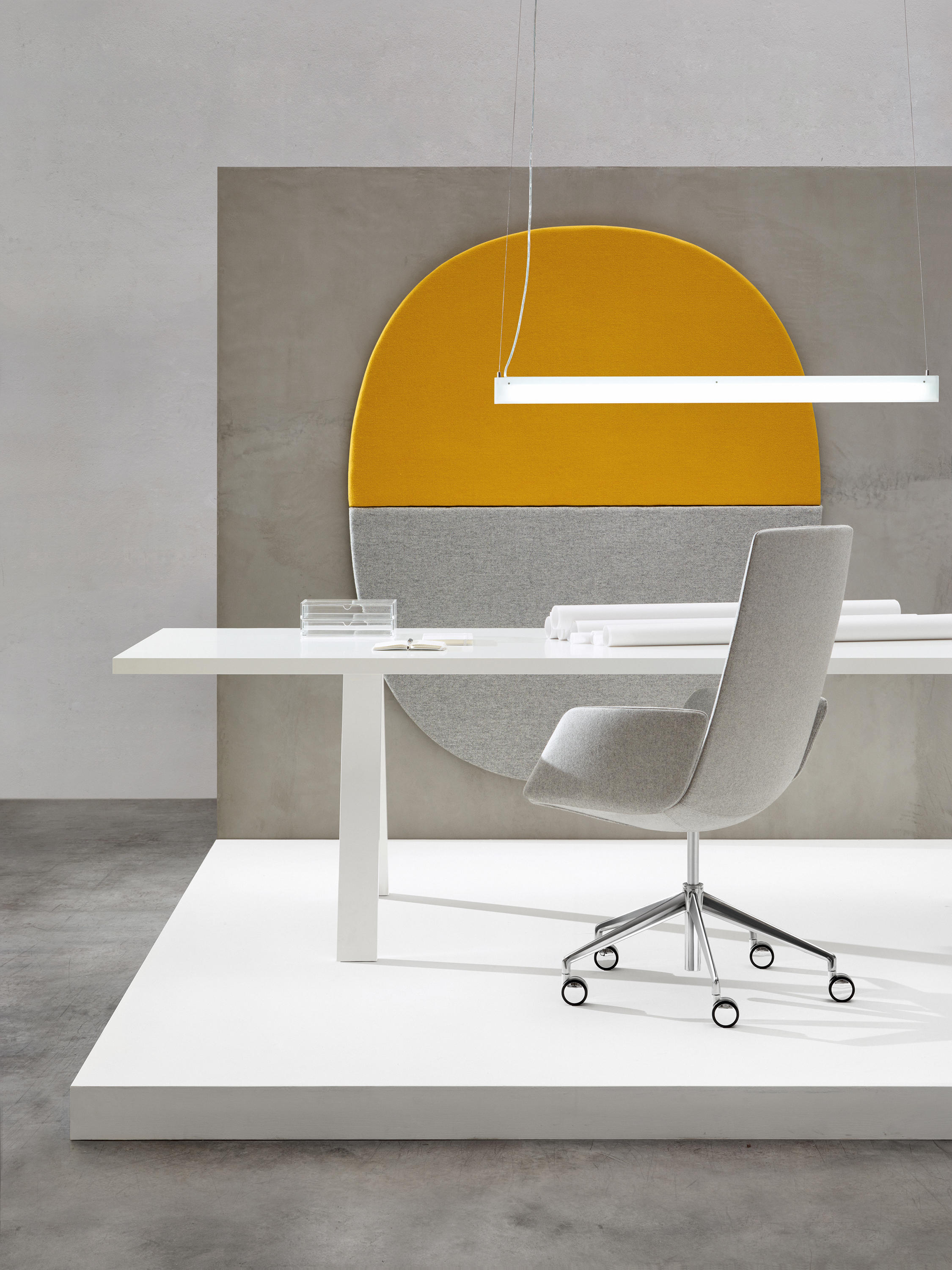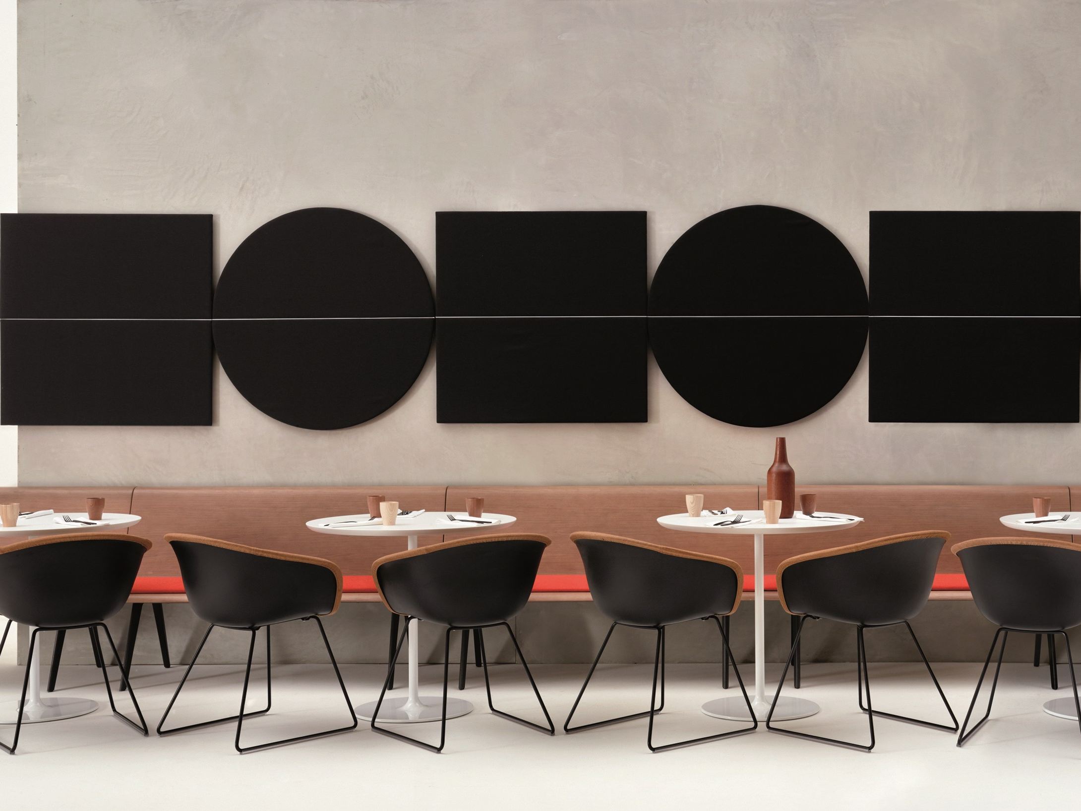 Parentesit是一个装饰模块墙板的集合,为当代共享空间提供舒适。粗体的图形形式有三种形状——圆形、正方形或椭圆形——可以通过添加扬声器或环境光进一步定制,以创建既实用又现代的视觉元素。该系列现在由独立版本补充,这是一个模块化的独立系统,用于在共享的工作空间或协作环境中进行集中注意力或安静对话。