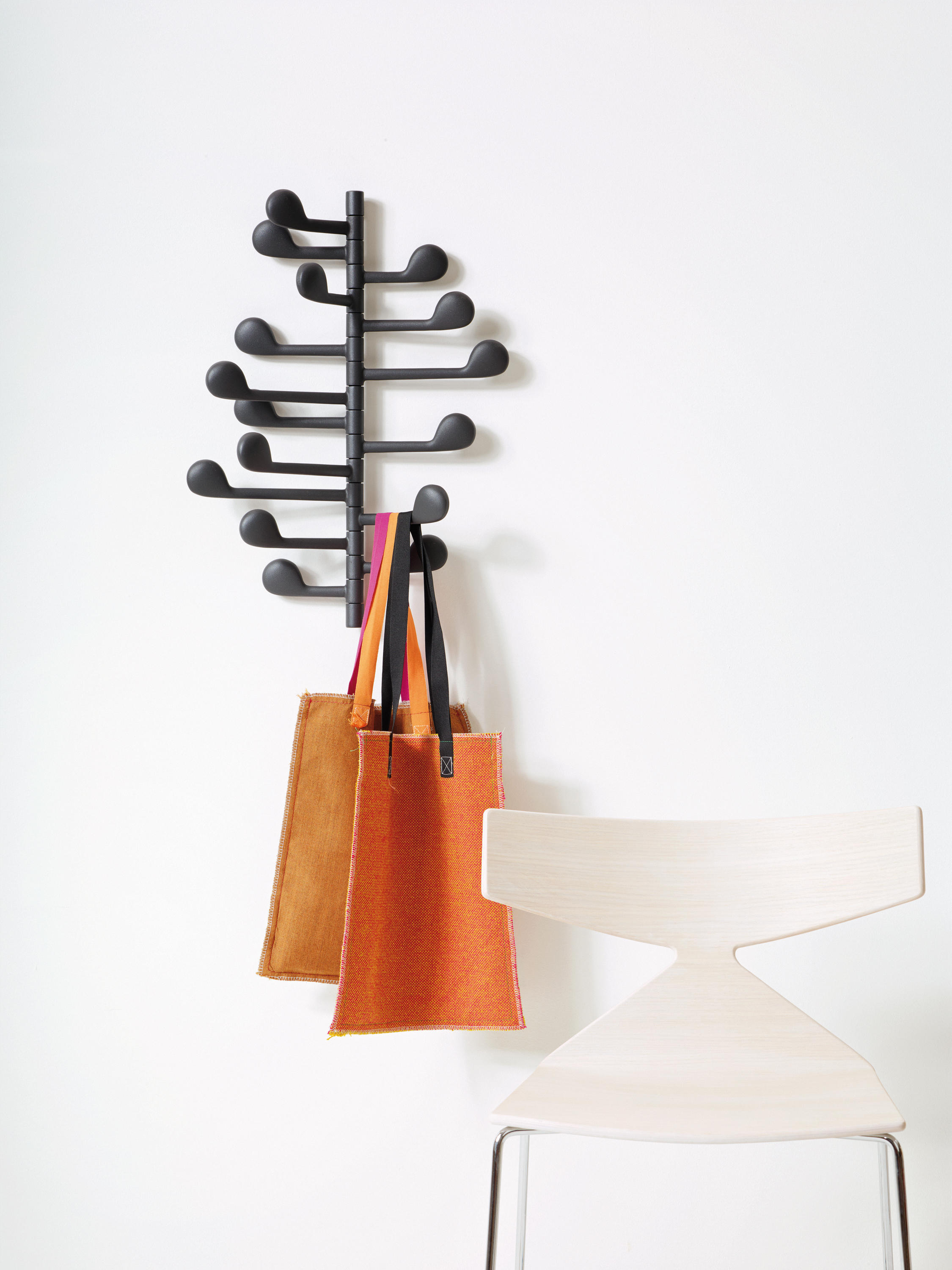 音乐是一切都在构成,在多种色调的安排下创造出和谐,引人入胜的整体。 Song是一个独立式或壁挂式衣架,由八个手臂组成,形状像音符,扭曲和转动,创造出多样化,动感的构图。 虽然设计用于一个目的,但它作为视觉游戏和几何形状的对象,非常适合需要悬挂,兴趣和参与的任何空间。 添加外套,围巾,帽子,它来生活。