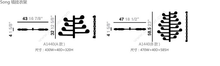 Song 墙挂衣架 系列尺寸/示意图