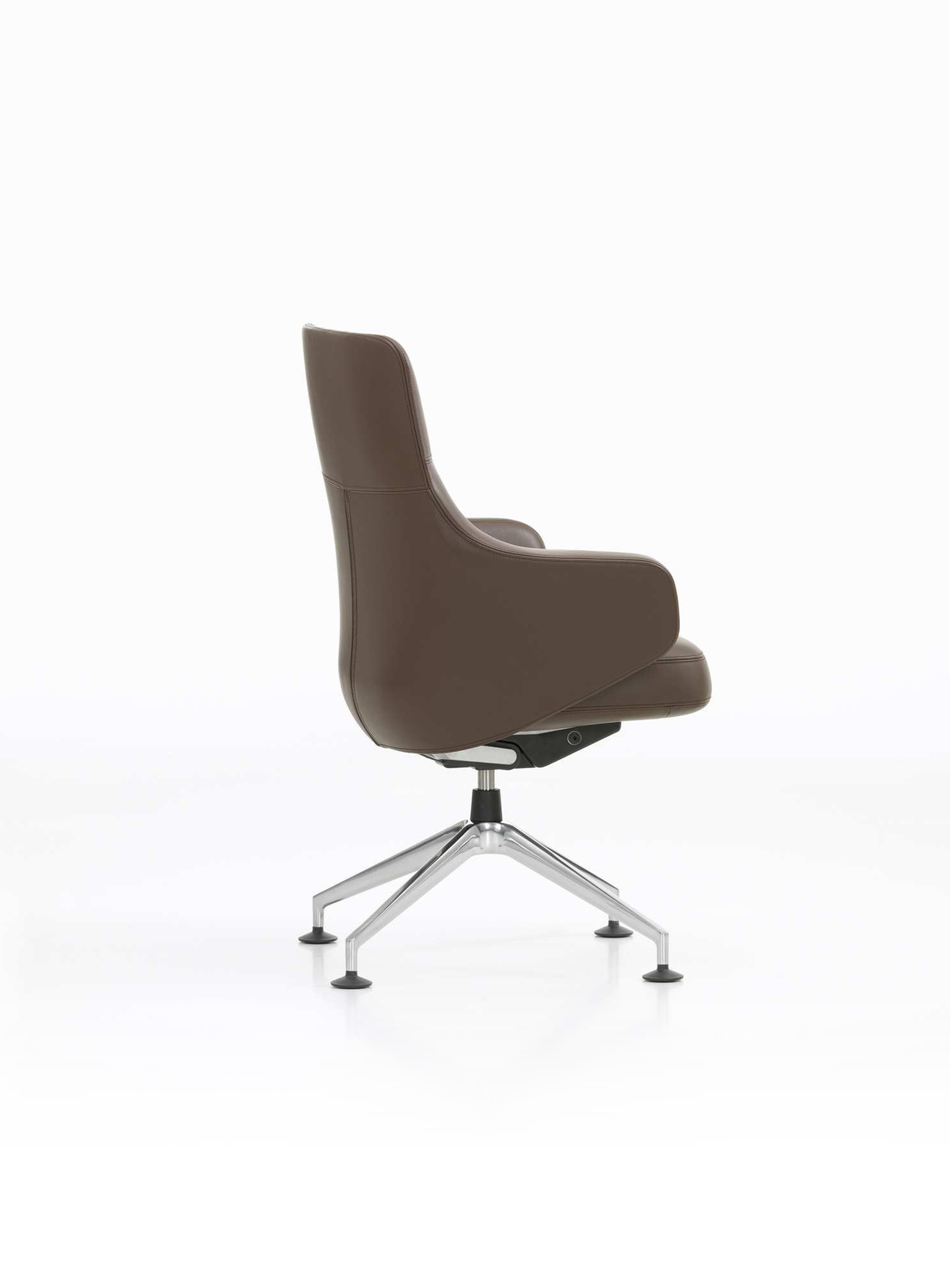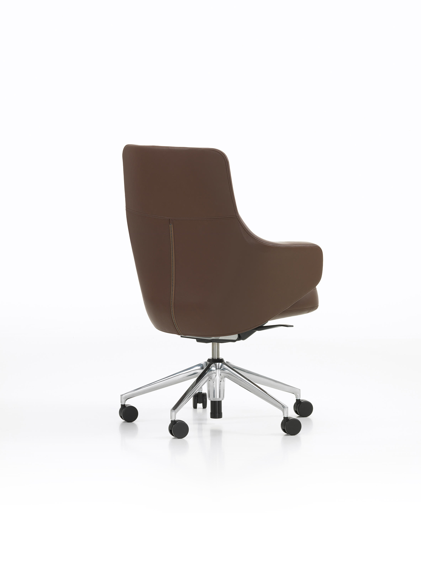 Grand Executive椅子结合了Grand Repos休闲椅的优雅,这是由Antonio Citterio为Vitra Home Collection设计的,具有现代办公椅的功能。 Grand Executive椅子的尊贵光环与时尚美感相得益彰。采用优质皮革制成,柔软的软垫内饰提供极致的舒适感。装饰性接缝凸显了椅子的手工细节,并勾勒出其体积结构。 FlowMotion机制可以适应个人用户,以确保每个坐姿的同步舒适度。 Grand Executive Highback模型配有可调节颈垫。