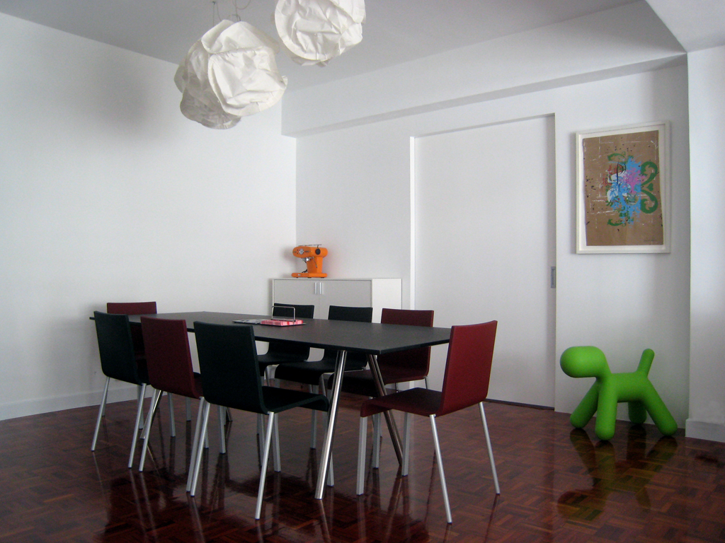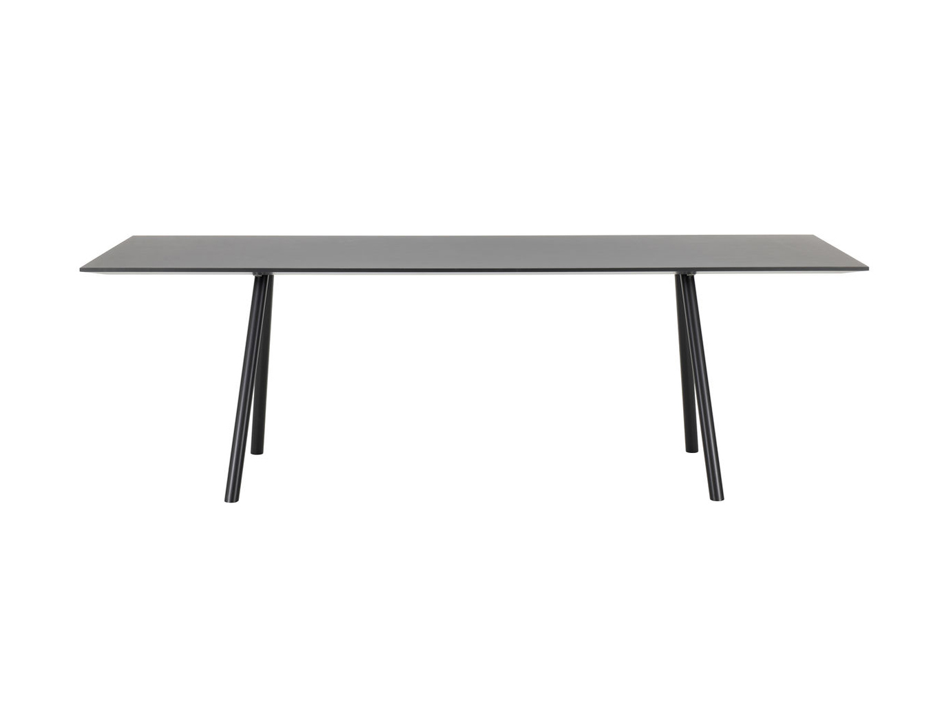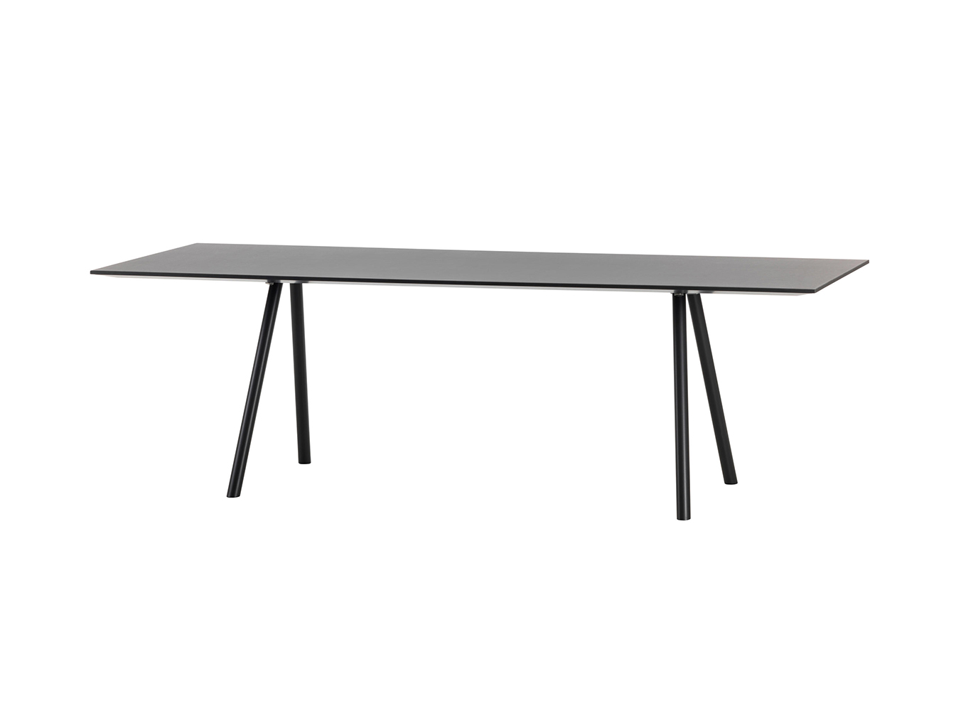像A-Table这样的纯粹设计使Maarten Van Severen成名:具有象征美感和精心平衡比例的产品成为他的标志。 桌面采用油毡表面,这是一种天然且耐磨的材料,营造出整体效果。 黑色桌腿突出了这种外观。