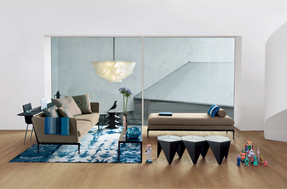 an elegant, timeless sofa system from Vitra and Antonio Citterio that is at once lightweight and technical. The precise geometry and soft padding of the body seem to float above the sleek, aluminum legs echoing classic, mid-century American design. Featuring individual components that can be freely combined, Suita adapts to suit all kinds of design visions, individual styles and environments.