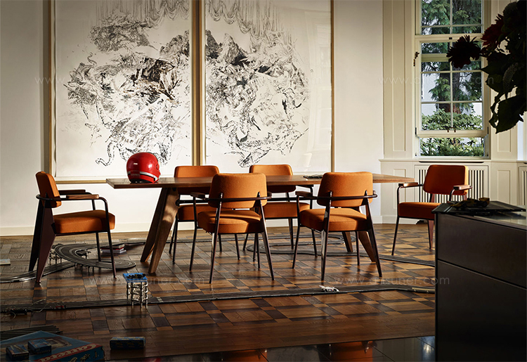 Fauteuil Direction特别适用于餐厅座位或家庭办公室的扶手椅。 该设计反映了JeanProuvé的特色美学词汇,它基于结构要求。 舒适的软垫扶手椅配有各种不同颜色的织物或皮革罩。