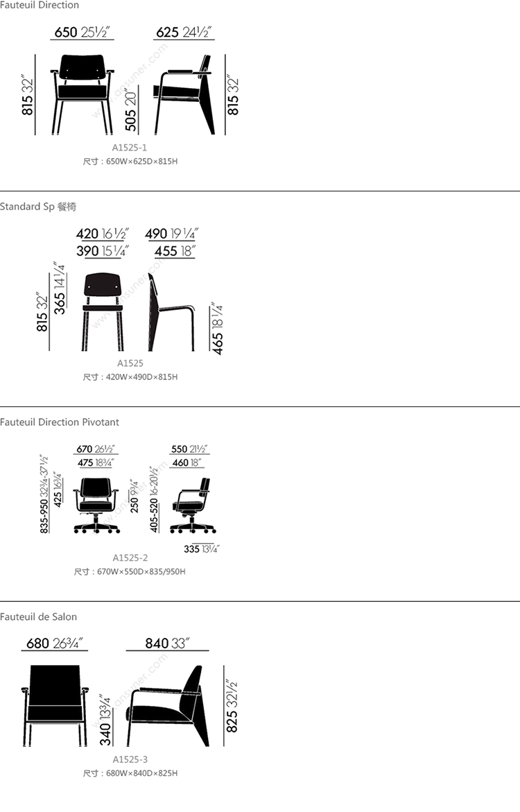 Fauteuil Direction 椅 系列尺寸/示意图