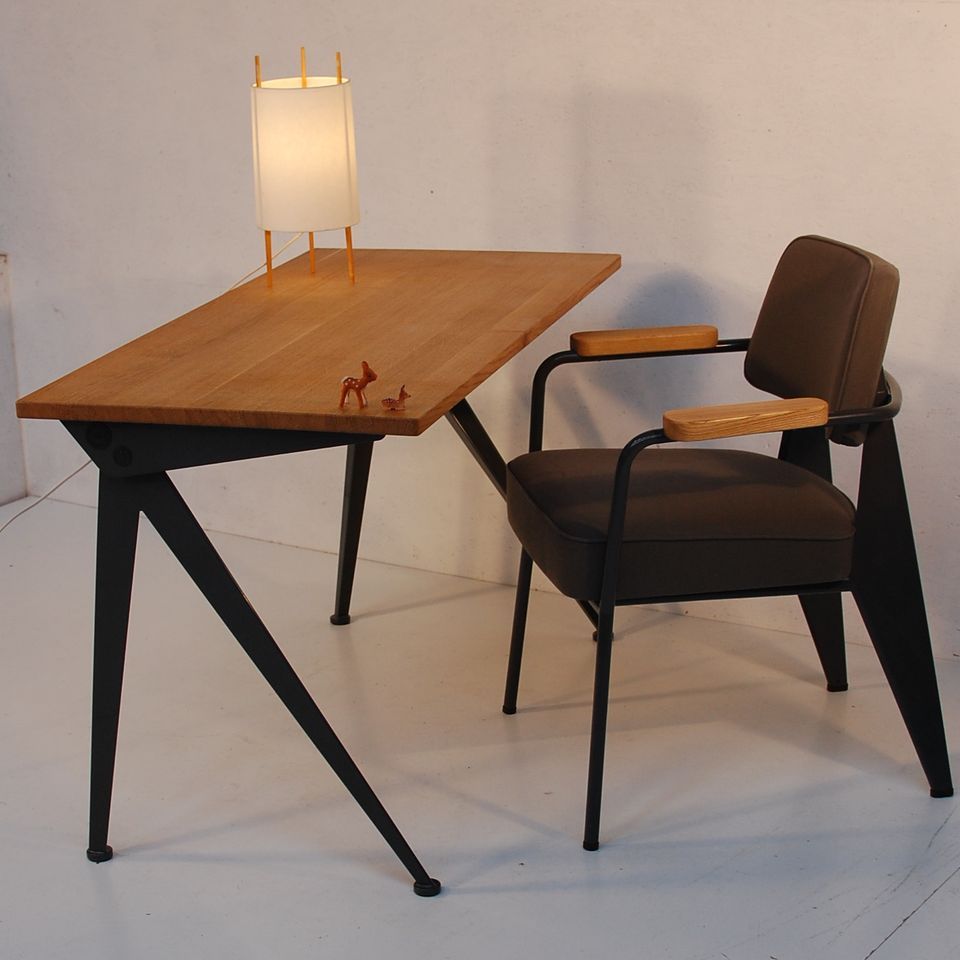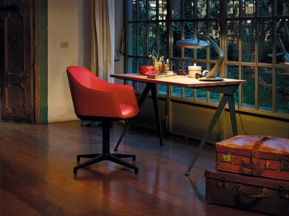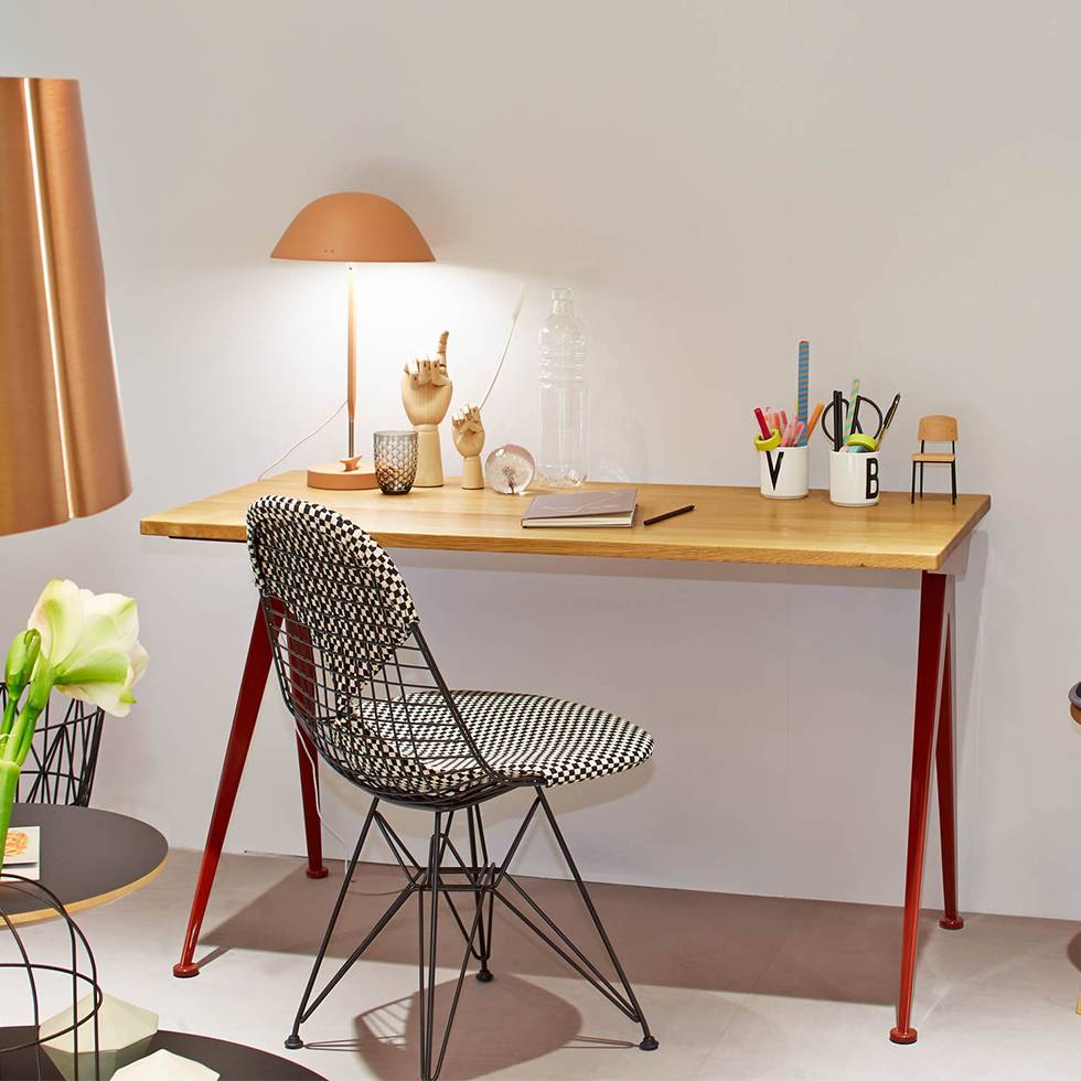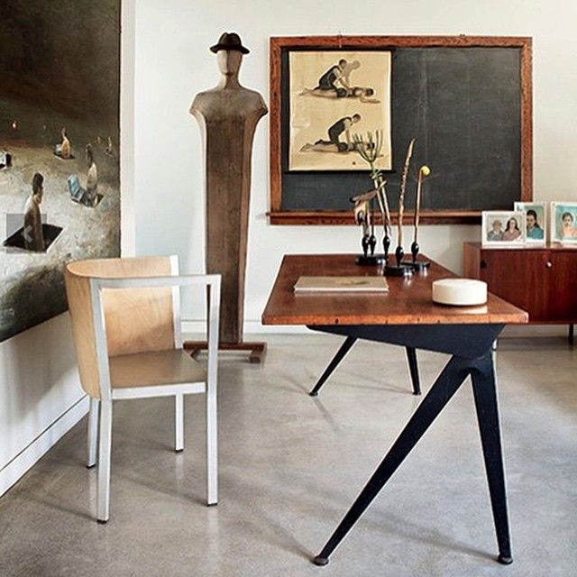 由JeanProuvé设计的Compas Direction办公桌,优雅的金属腿让人想起指南针的铰链臂 - 法语中的“le compas”。 他们的设计基于工程原理,代表了法国设计师和工程师的结构方法。 与涂油的实木桌面搭配,它们在家庭办公室形成了丰富的对比材料组合。