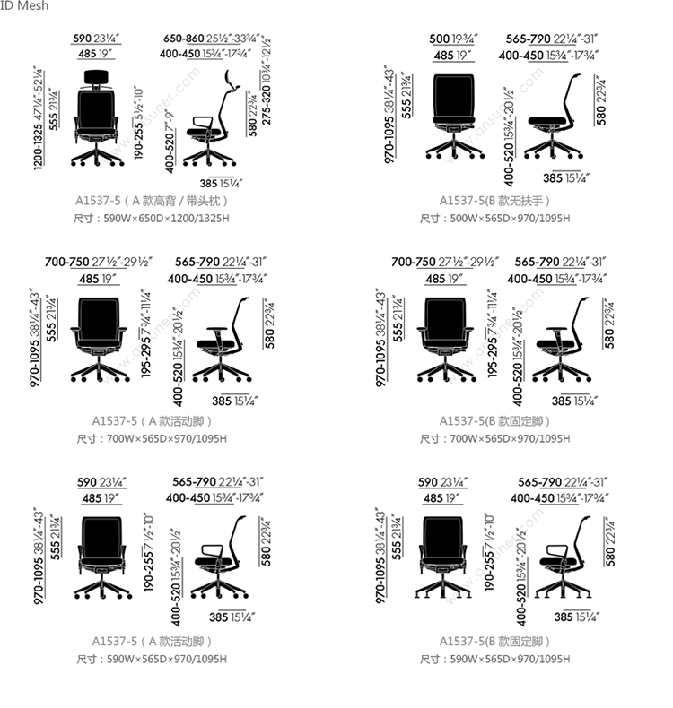 ID Mesh 系列尺寸/示意图