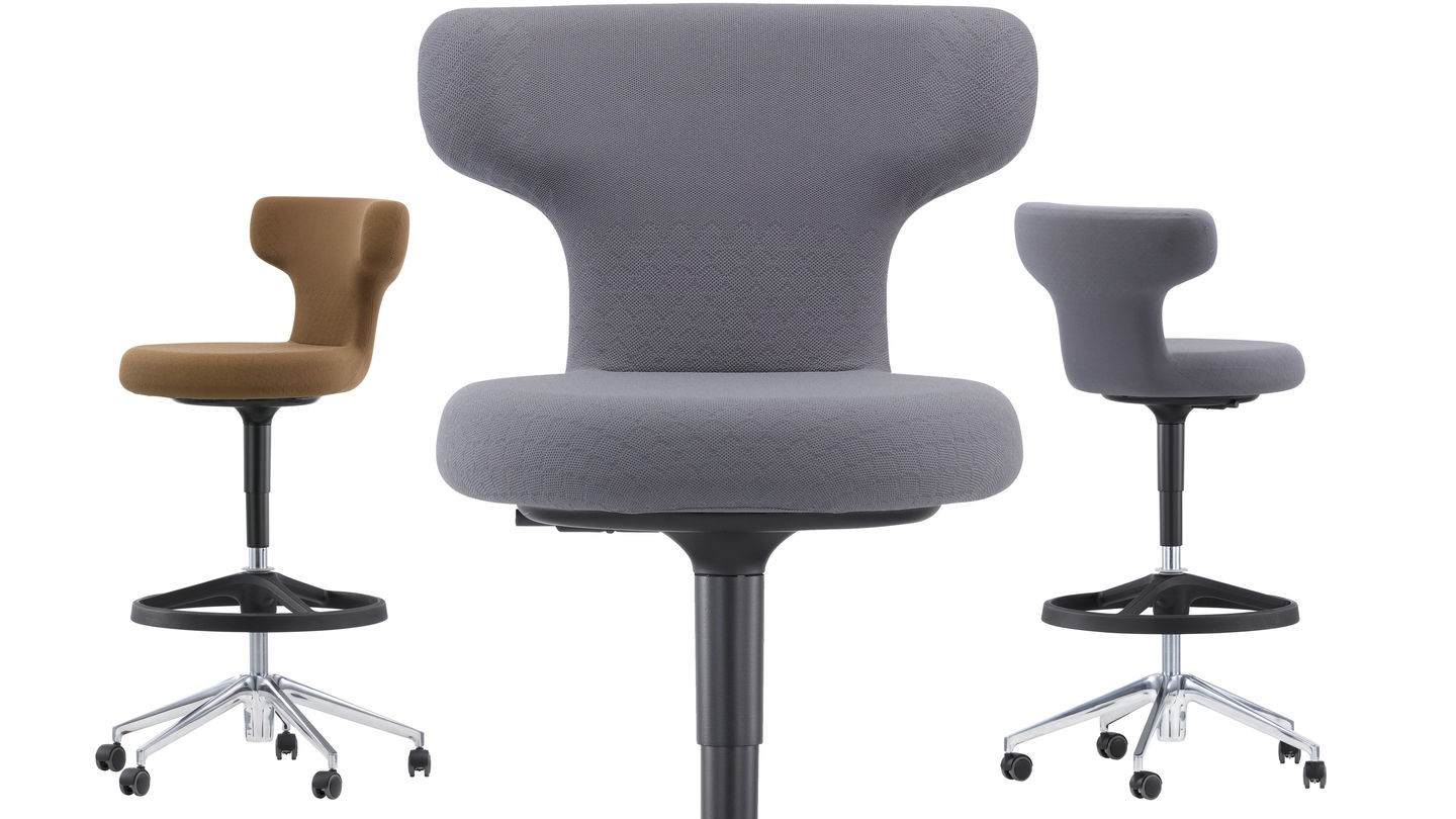 Pivot Counter Stool椅子有一个圆形和弯曲的靠背向前。 它有助于改变姿势,因为椅子也可以横向使用或作为倾斜的稳定支撑。 柔软的衬垫确保了极佳的舒适性。