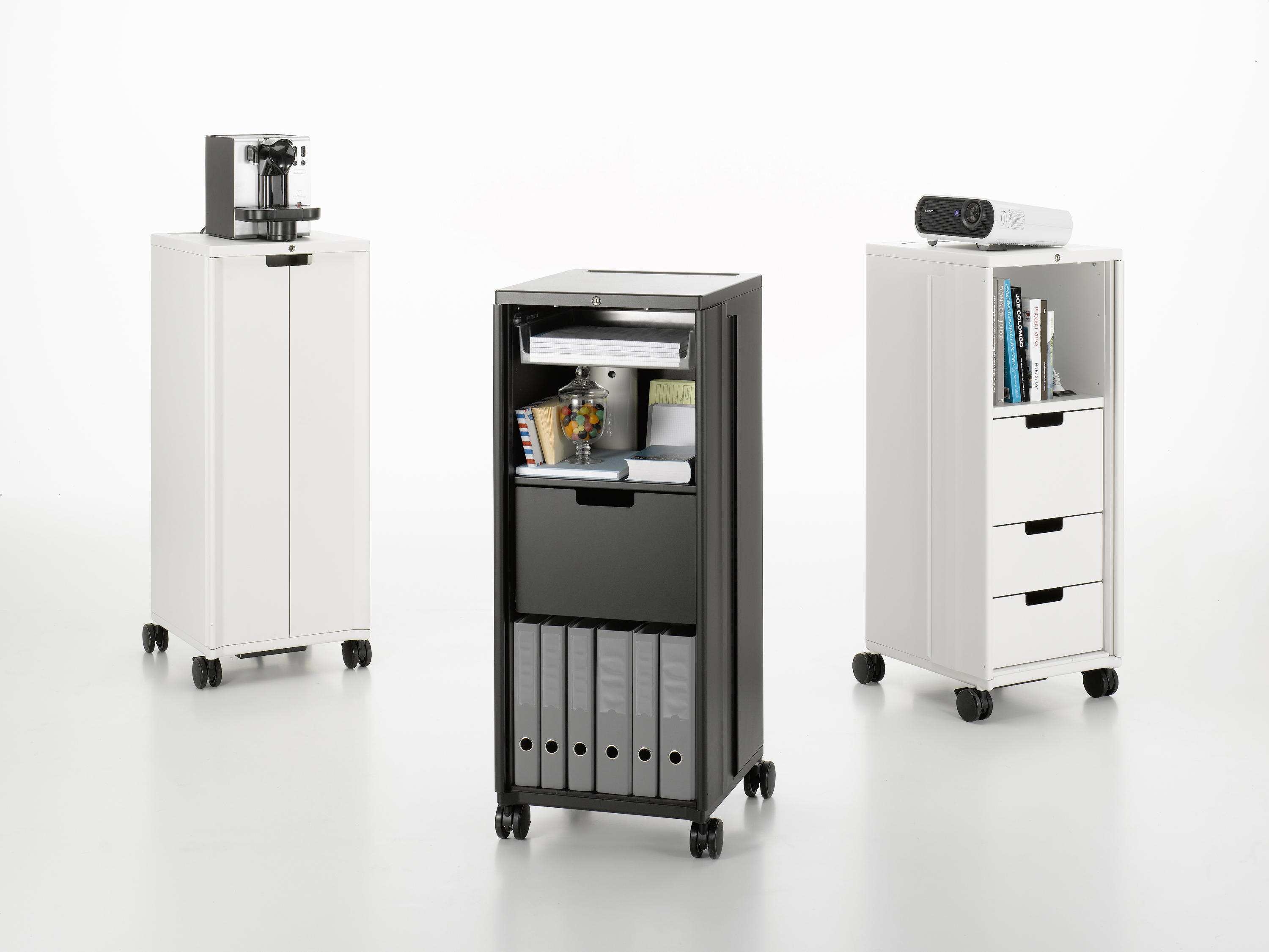 飞机手推车激发了建筑师和设计师Christoph Ingenhoven的灵感,开发出带Vitra的移动存储家具Caddy。 由粉末涂层钢板制成,Caddy坚固耐用,其各种家具选择使其成为办公室的实用伴侣:它还可以配置为复杂的电气化站立工作场所,作为演示投影仪的基础或作为餐饮用途的帮手。