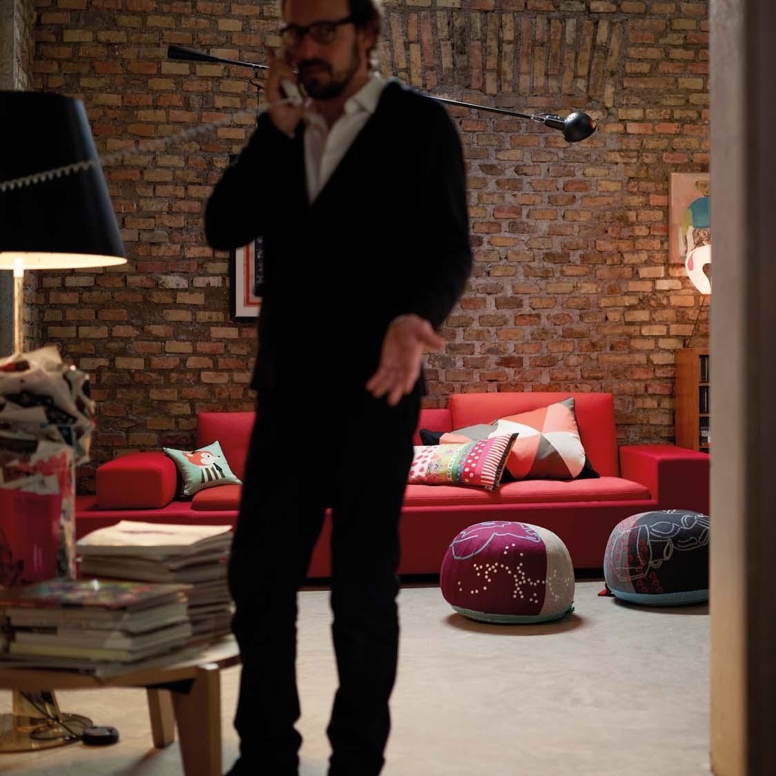 由Hella Jongerius设计的Bovist是一个装饰性地板枕头,凳子和脚凳。 奇特的刺绣图案为封面带来特别的风格,由对比色的面料缝制而成。 两侧的锥形径向接缝和紧凑的小合成珠子填充物提供了舒适的座椅,而由针织纱线制成的手柄使Bovist可以轻松地从一个地方移动到另一个地方。