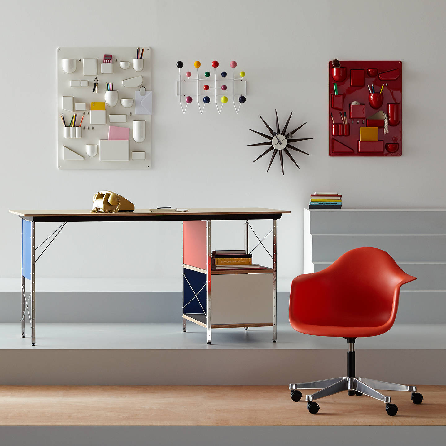信仰进步和日益增长的经济繁荣是1950年左右美国生活方式的核心方面。一切似乎都有可能,人们努力做到“现代”。 为了将现代设计融入美国家庭,乔治·尼尔森构思了各种日常用品:灯具,钟表和其他家居饰品。 直到20世纪70年代,尼尔森办公室为家庭创造了许多不同的物品,包括泡泡灯和球钟,它们成为了本世纪中期现代设计的象征。