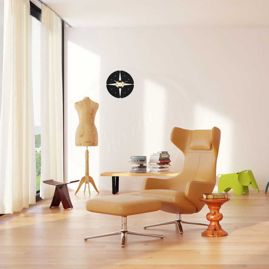 信仰进步和日益增长的经济繁荣是1950年左右美国生活方式的核心方面。一切似乎都有可能,人们努力做到“现代”。 为了将现代设计融入美国家庭,乔治·尼尔森构思了各种日常用品:灯具,钟表和其他家居饰品。 直到20世纪70年代,尼尔森办公室为家庭创造了许多不同的物品,包括泡泡灯和球钟,它们成为了本世纪中期现代设计的象征。