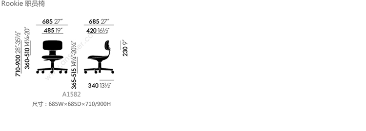 Rookie 职员椅 系列尺寸/示意图
