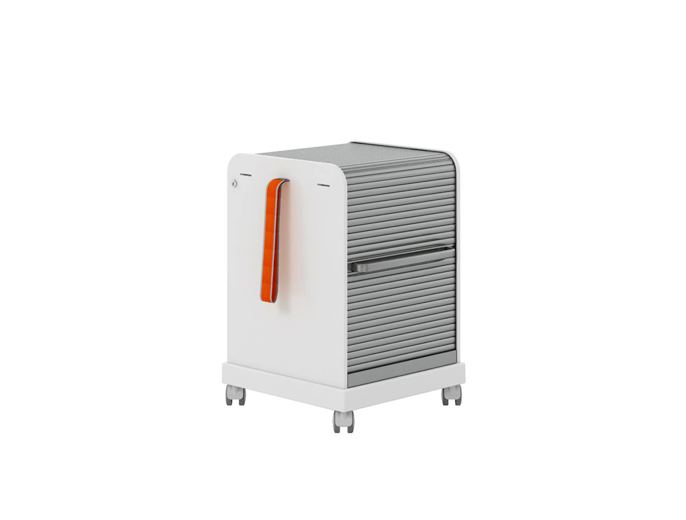 跟随我1和2是坚固,可锁定的移动基座,用于办公室和家庭。 装饰性拉带可以轻松地将手推车从一个地方移动到另一个地方。 一个(跟随我1)或两个(跟随我2)用于活页夹的货架空间和一个带有可移动托盘的集成存储隔间用于纸张和个人物品可以隐藏在移动基座的鼓形快门后面。 两种型号都可以单独配置可选的抽屉和搁板。 较高的Follow Me 2版本是站立高度表的理想伴侣。