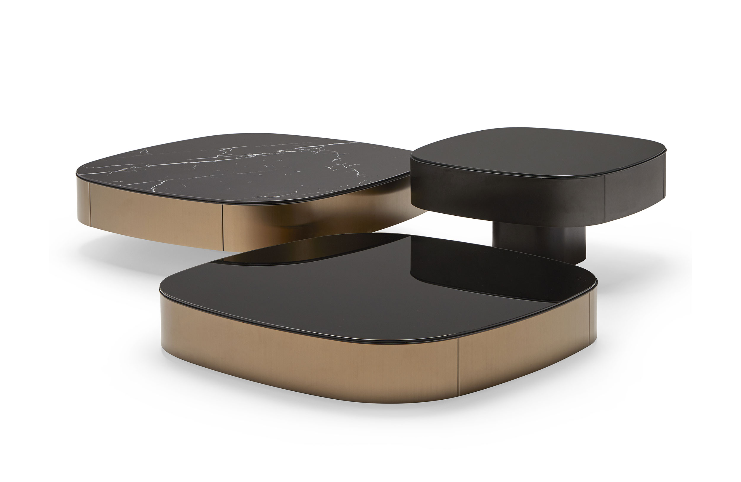 该系列将非凡材料结合在一个既不是圆形也不是方形的辅助桌子中; 它们的一面有些拉长或略有侧面,但它们仍然非常雄伟。克莱斯勒系列有大理石台面,漆面玻璃,木材,皮革和其他材料; 所有都通过迷人的金属饰边增强。附加的不锈钢周边有以下色度范围:青铜色,锡色或黑色。