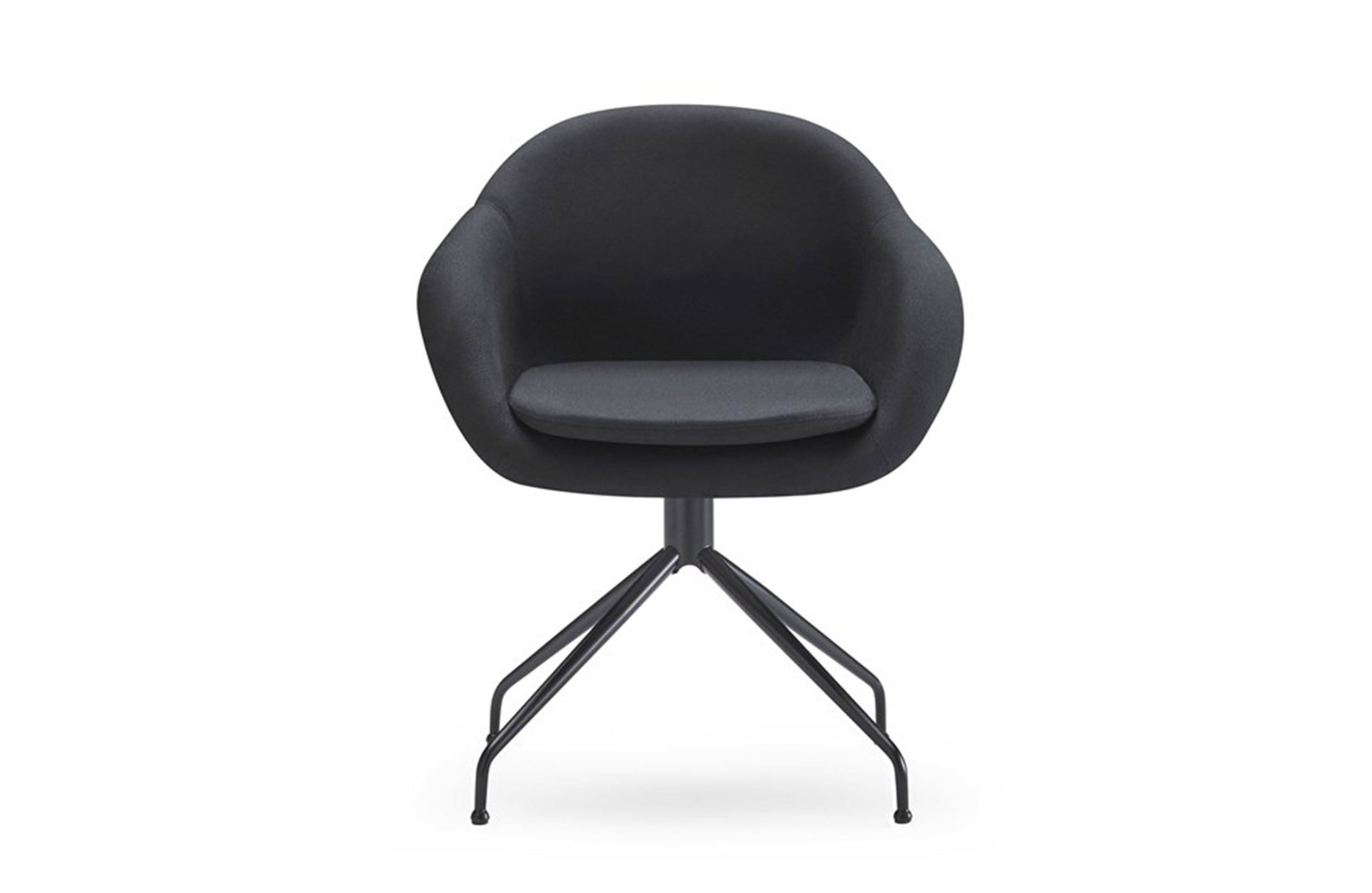 旋转扶手椅。双层成型玻璃纤维芯,无软垫靠背。软垫和胶合内表面。四脚金属脚,不锈钢。表面处理:金属底座采用抛光铬或漆面处理。成型芯为白色或黑色。室内装潢TUNDRA或EXTREM PLUS,技术面料种类繁多。