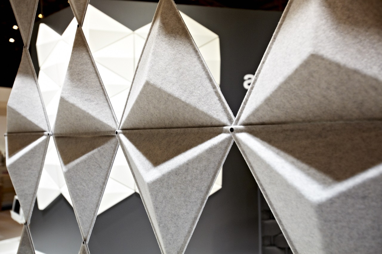 将Aircone与吸音产品相结合,确保出色的音响效果。Aircone包括由模制纤维毡制成的三角形模块。模块可以与剪辑连接以创建不同类型的图案形成。使用白色或银色阳极氧化铝导轨连接到天花板或墙壁。