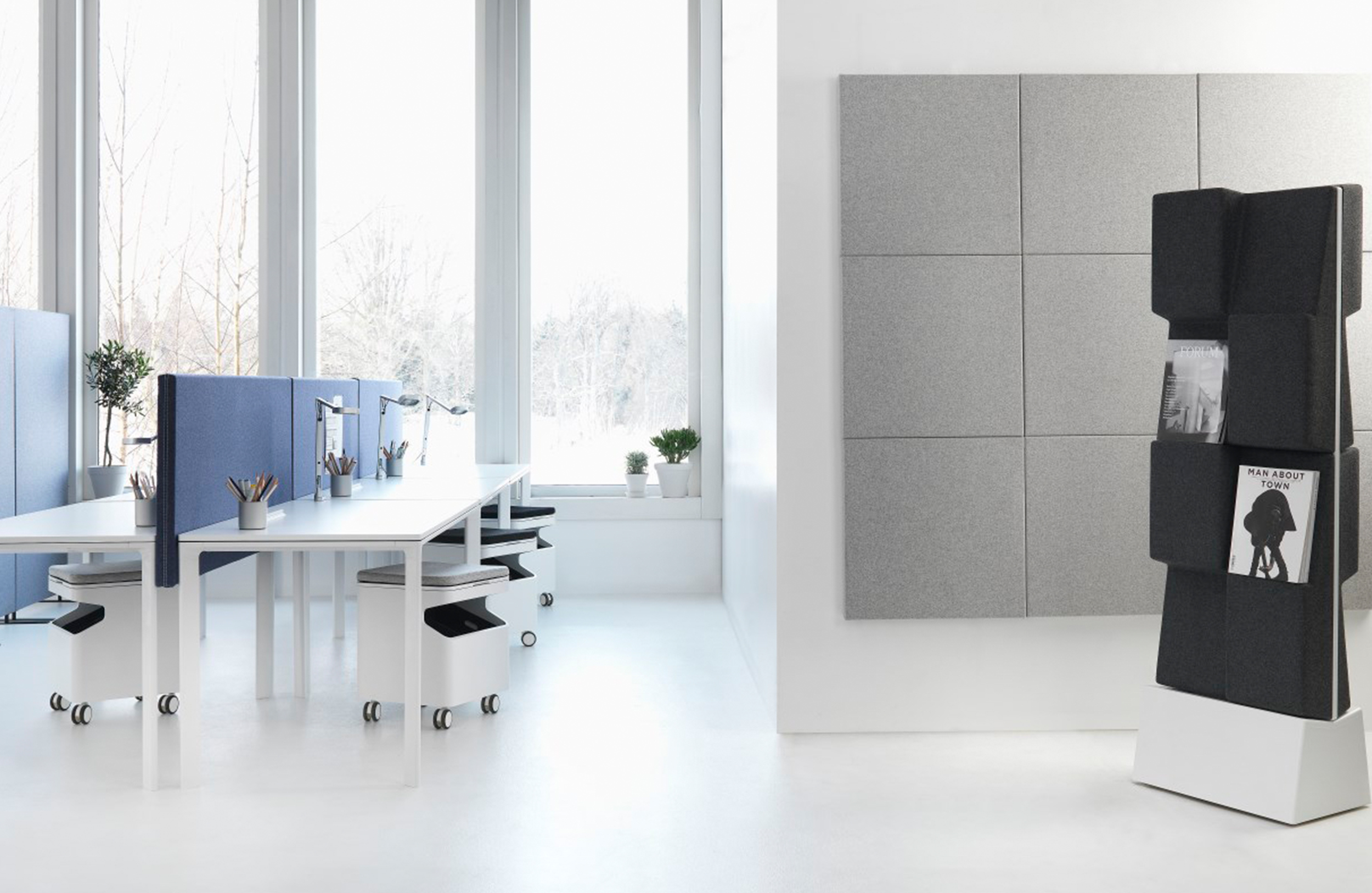 窗口是一个杂志展示架,充当吸音器,或充当杂志展示架的吸声器。由于采用模块化设计,Window可根据所需尺寸进行定制。窗户包括模制毛毡,内部带有吸音再生纤维板。使用隐藏式墙壁支架安装在墙上。提供2x2或3x3模块。