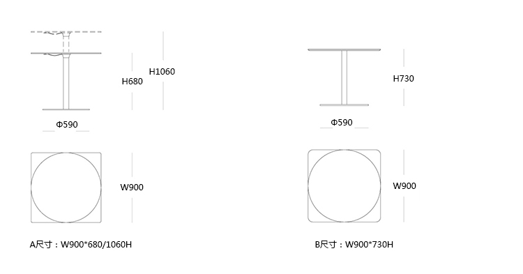 RONDò 咖啡桌/洽谈台 系列尺寸/示意图