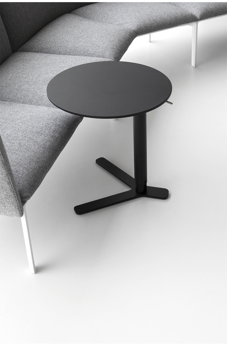 回顾胜利的标志,YO桌是成功的,因为它的多功能性,满足所有的需要作为一个顶部的工作和放松空间。由于它的偏离中心的底部和它的Y形腿,桌面,以各种几何形状,完美地对齐扶手椅和沙发。高度可调,它就像一张小桌子一样方便.