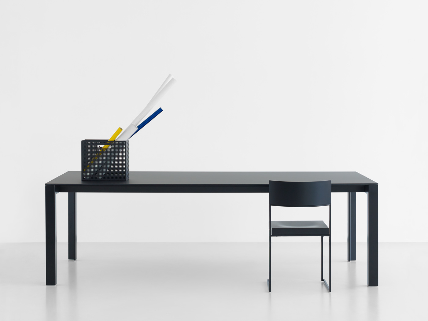 一条狭小的线条和一个正方形的结合,导致了一套极具吸引力的椅子和凳子系统,非常简约,这要归功于座椅的形状和靠背弯曲的曲线。