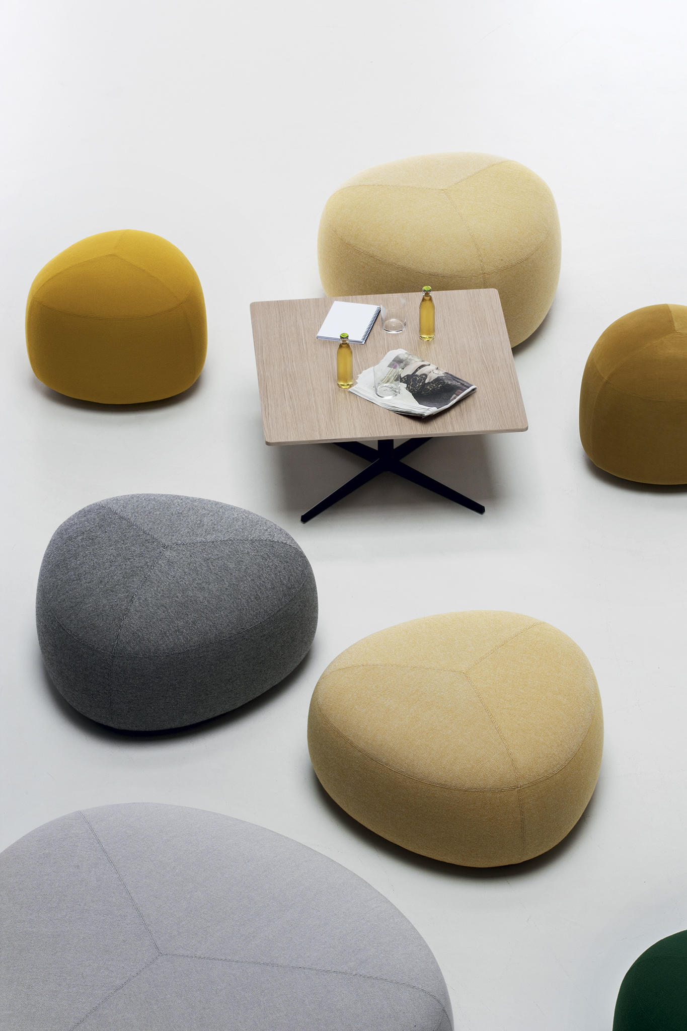 在夏天,在海滩上收集鹅卵石,握在手里,感觉它们的边缘被海浪抚平是一种乐趣。其中一些会在你的口袋里作为一次邂逅的提醒,一个独特的日子。安德森和沃尔追溯了这些快乐的时刻,把最美丽的鹅卵石变成了一个奇妙的坐垫。都有不同的高度、颜色和形状。所有这些都是将车顶变成座椅的通用组合。就好像每一个办公室、休息室和家庭环境都能突然俯瞰北海的海滩。