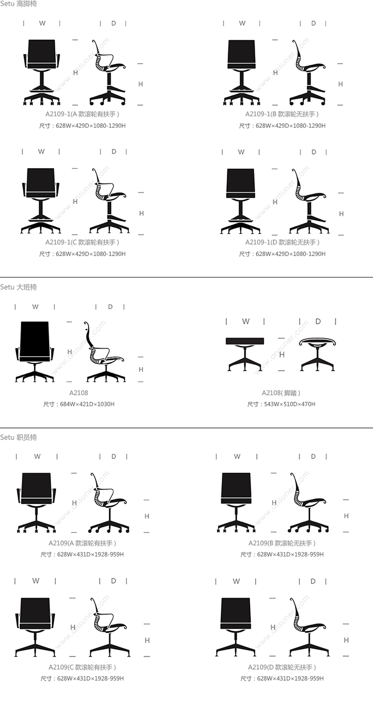 Setu 高脚椅 系列尺寸/示意图