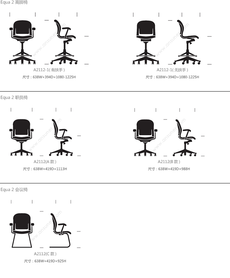 Equa 2 高脚椅 系列尺寸/示意图