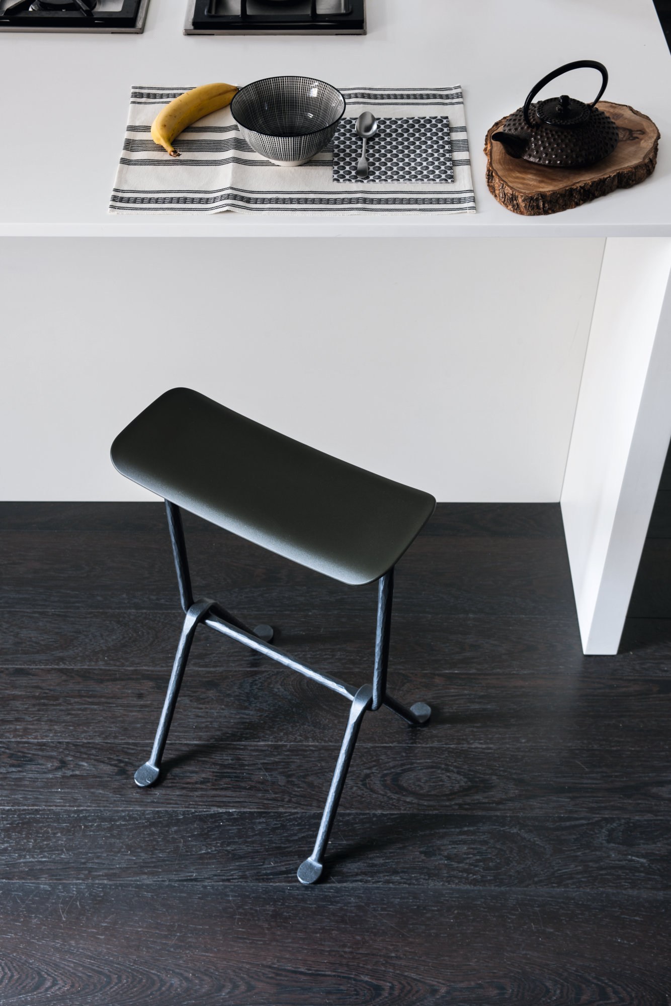 设计师罗南(Ronan)和Erwan Bouroullec用他们的办公凳,采用了古代的滴锻铁工艺,创造了属于当下的物质语言。锻铁腿以坚固的结构缠绕在一起,但它们表现出微妙的平衡和最小的存在。它们与聚丙烯座椅匹配,可提供多种颜色,以适应各种当代室内设计