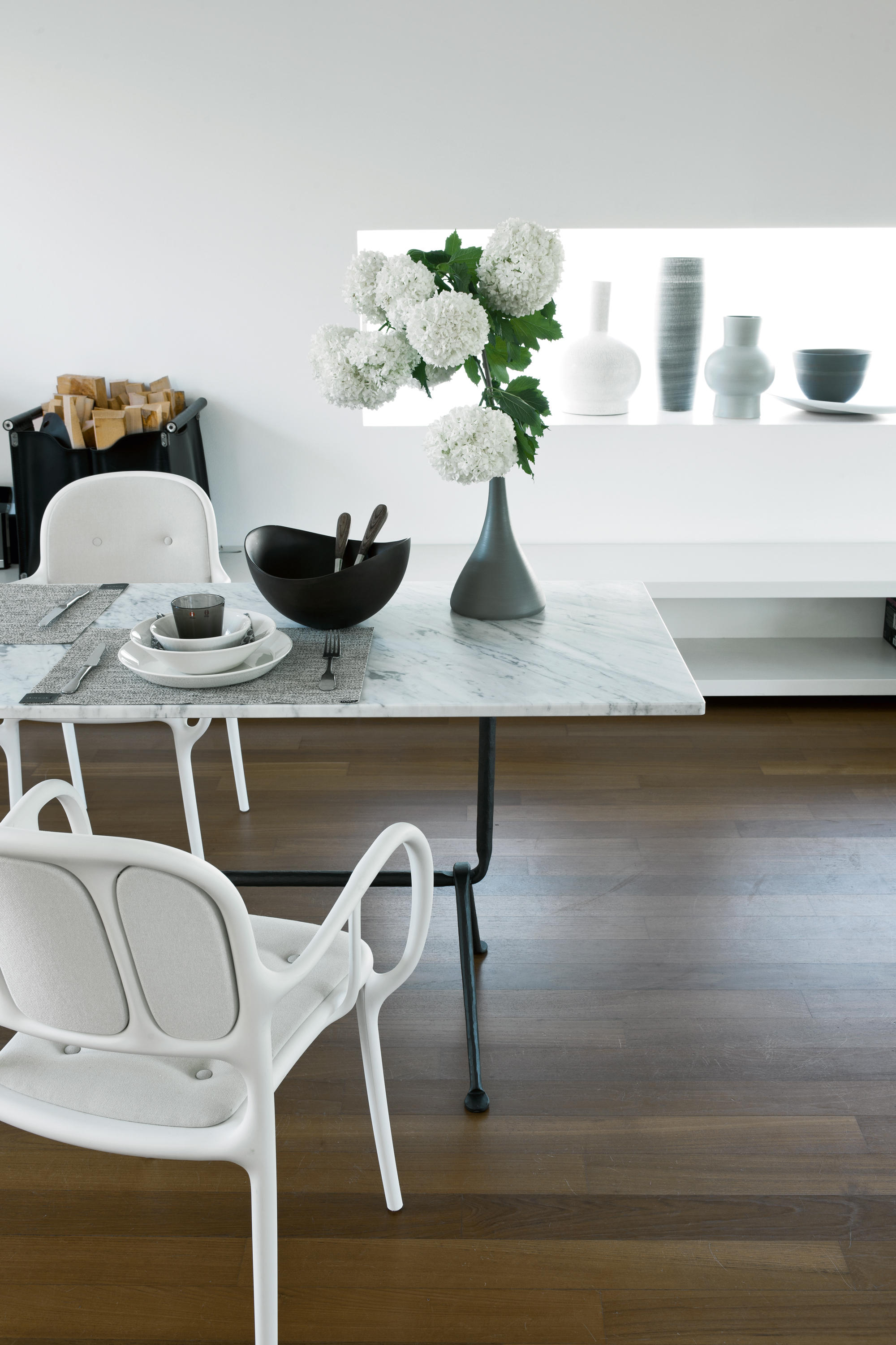 罗南补充说:“这个项目的微妙之处在于,它使用了这些暴力、强烈的手势,同时,材料的最小使用和它们的巧妙手法使它变得微妙。”几何形状的基座具有系统性,可以承受不同高度的压力,可以承受不同大小、不同形状和不同材质的顶部。