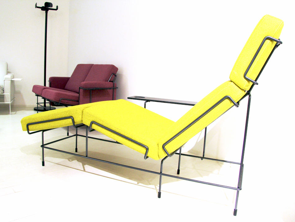 所有的产品均配有膨胀的聚氨酯泡沫垫,在织物或皮革的装潢和粉末涂层金属结构。交通躺椅提供皮革内饰或Kvadrat钢制三层面料室内装潢。每个躺椅都有一个丙烯酸石碑。