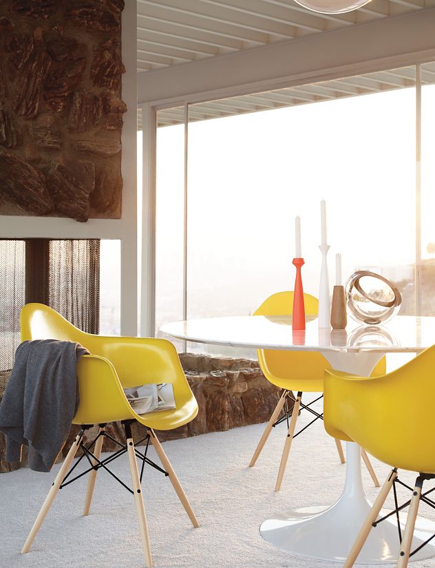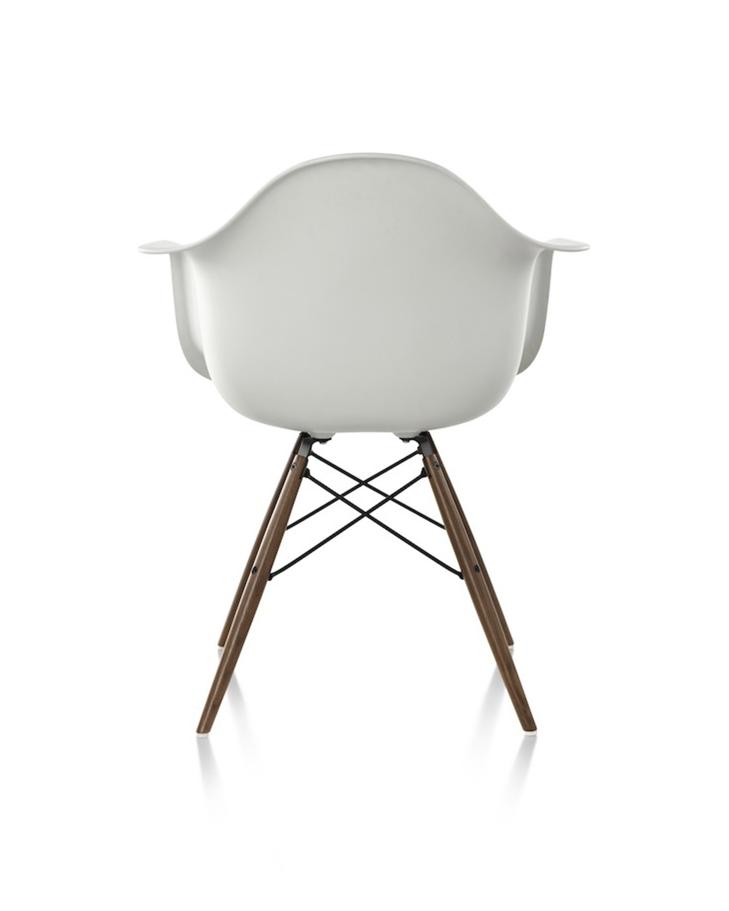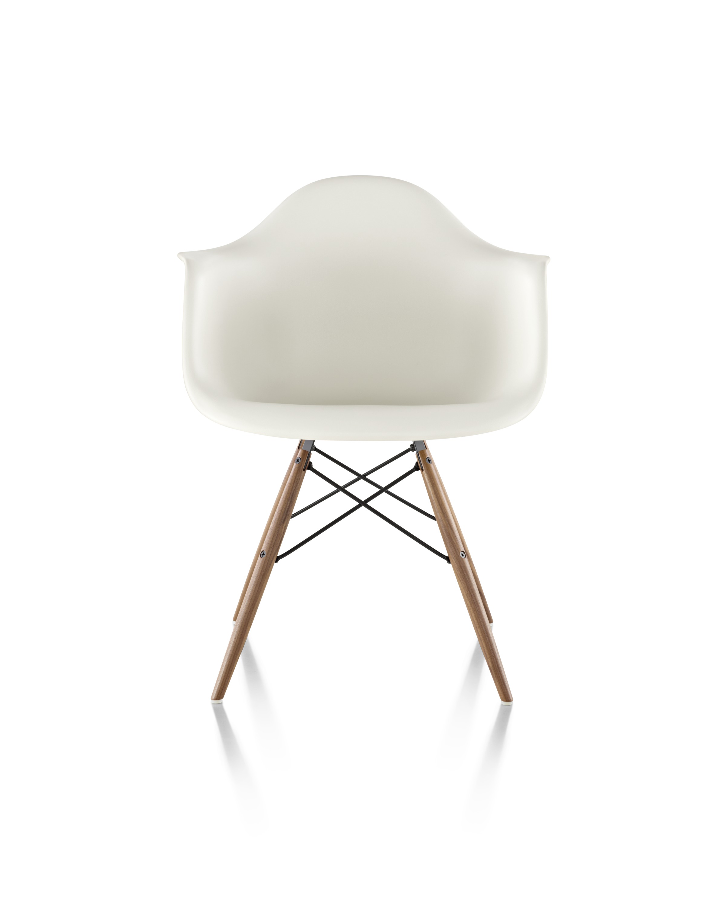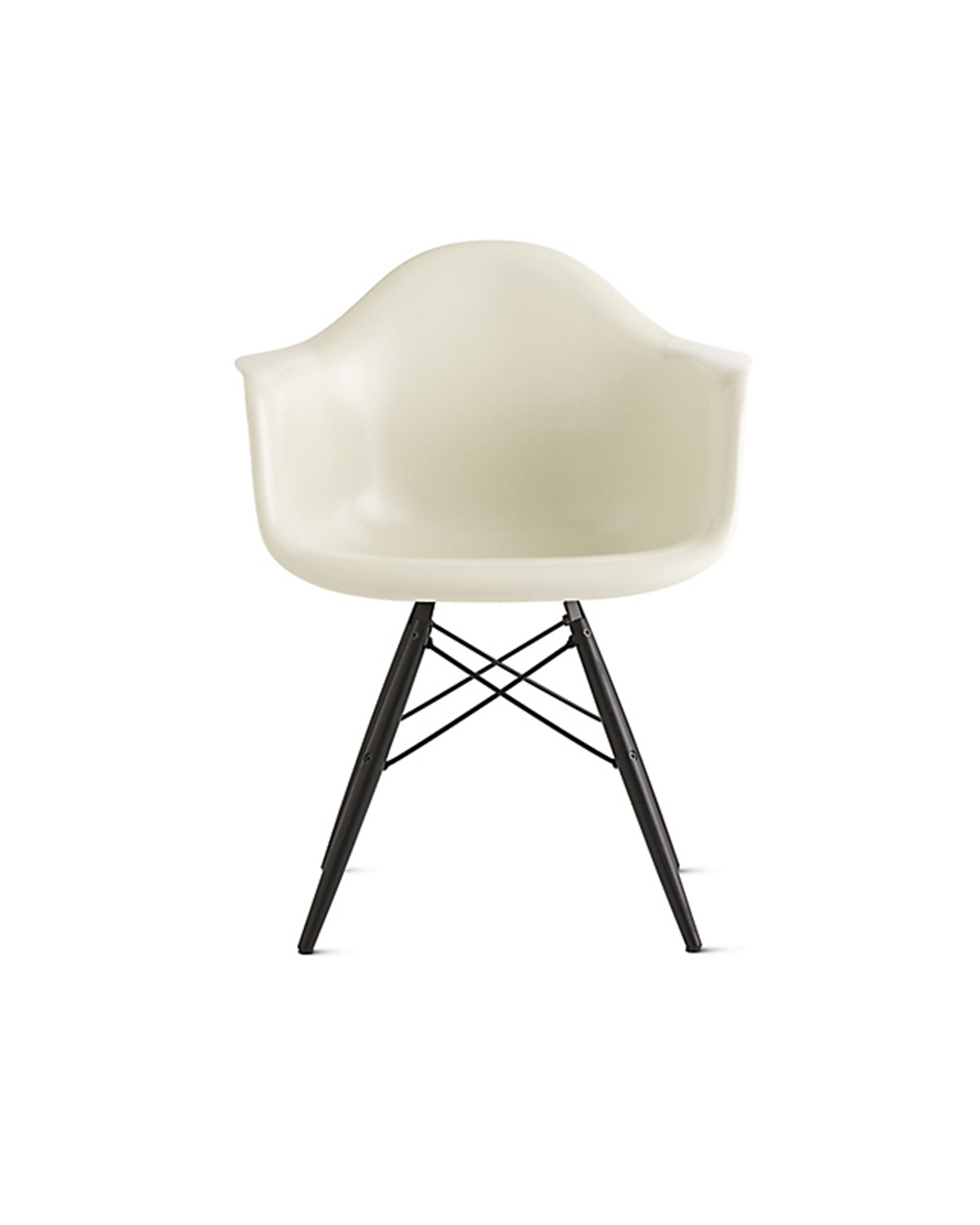 本单品为Eames Plastic Chair 系列成员之一,舒适的椅座外观设计是以添加了玻璃纤维强化的塑料来制作,再搭配上各式不同的脚座来增添使用的多样化,值得一提的是Eames Plastic Chair 的创新技术与材质,便它得以成为全世界第一张被大量制造的单椅。拜现今创新的科技所赐,全系列的Eames Plastic chair 终于再次制造,使用环保可回收的聚丙烯材质,求制作线条优美的椅座外壳,不但重量更轻,同时更具有更好的耐热性及抗化学性。