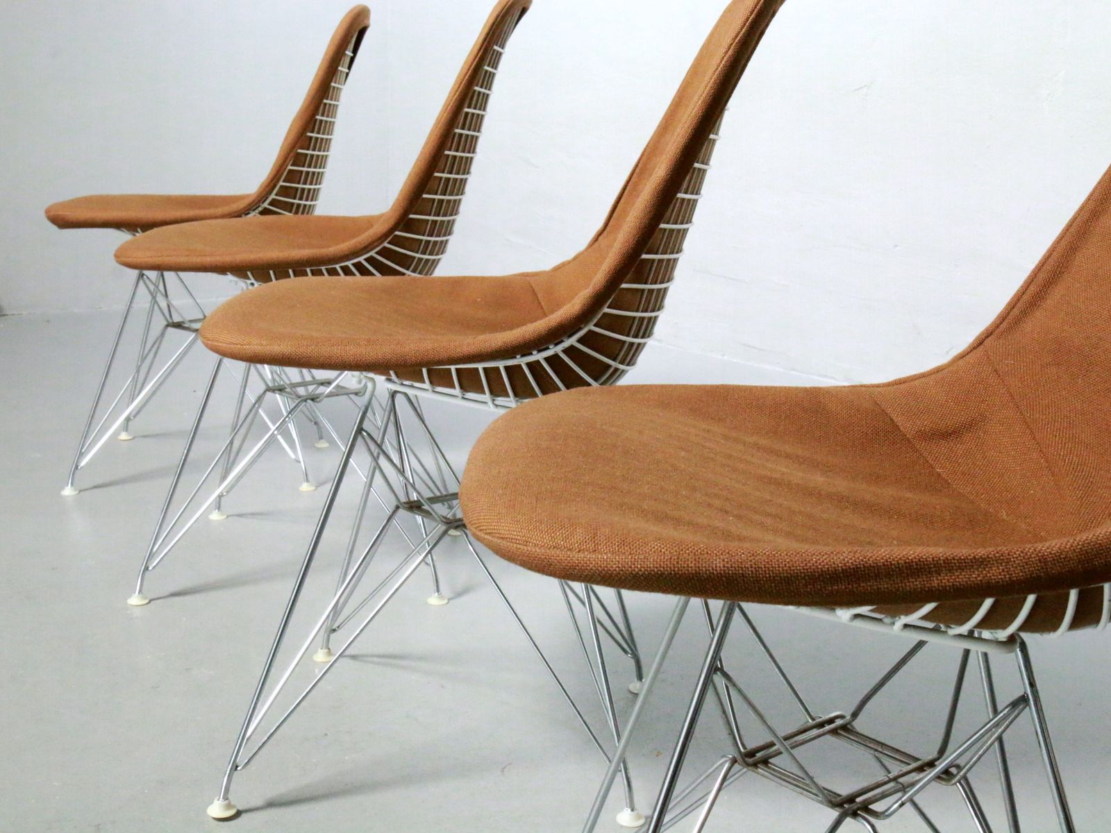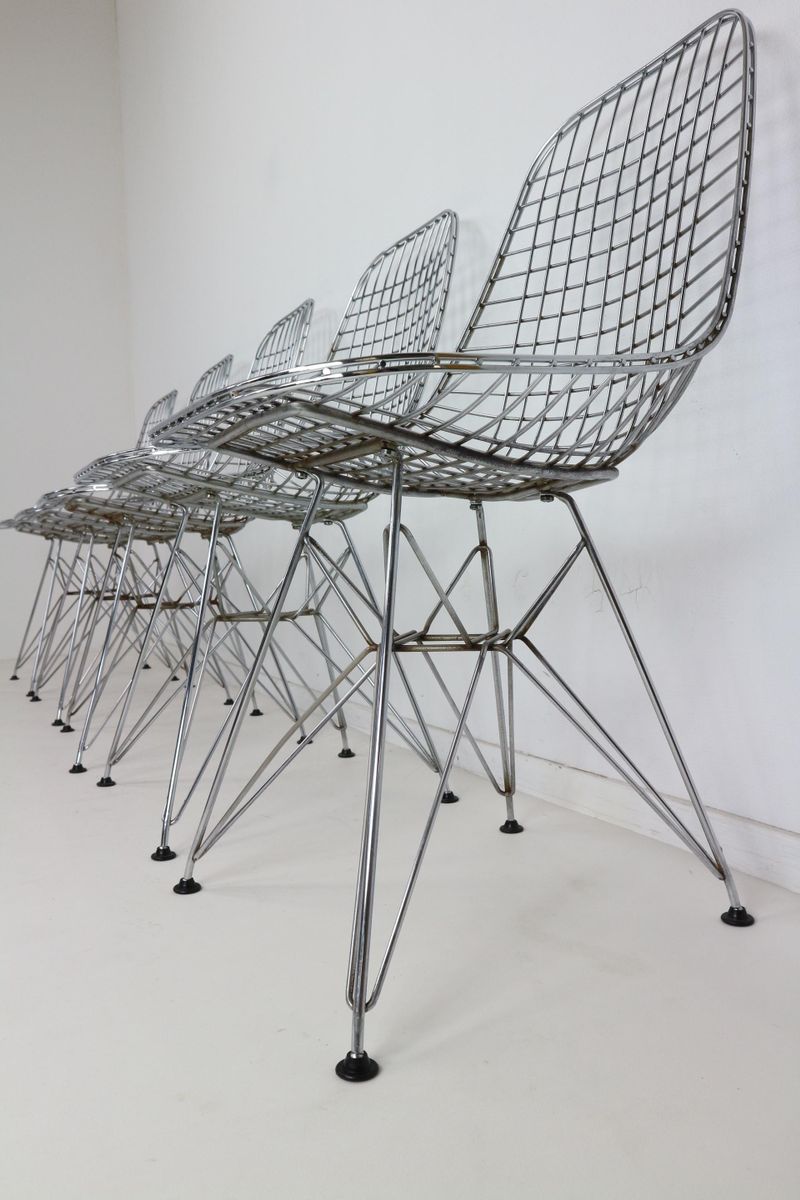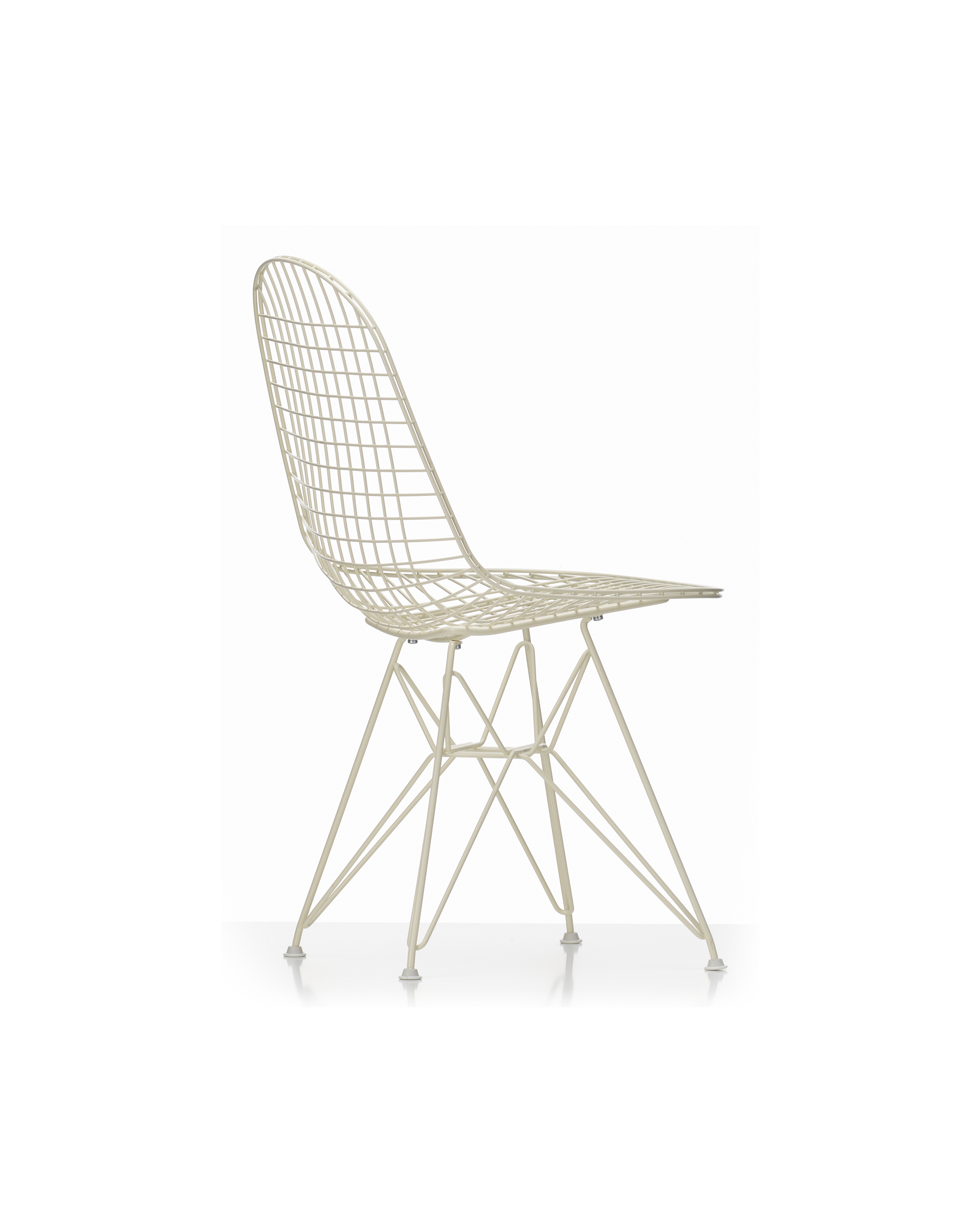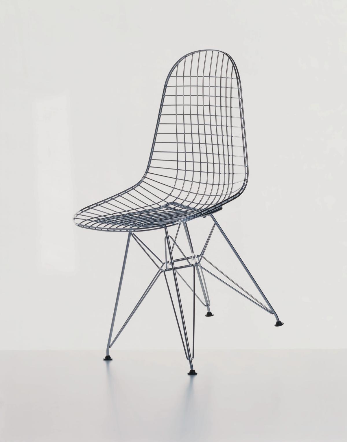 Charles & Ray Eames 1951 年發表的 Wire Chair 系列,以一片式有機網狀椅座,延伸變化出一系列不同椅腳及座墊搭配的單椅,這系列椅款輕巧透明的設計,在 60 年代可說是運用了當時最先進的技術來製作,靈感則是來自於鏤空的金屬收納籃,金屬條交織的椅座,彎曲的弧面不僅符合人體工學,在視覺上更具有穿透性。