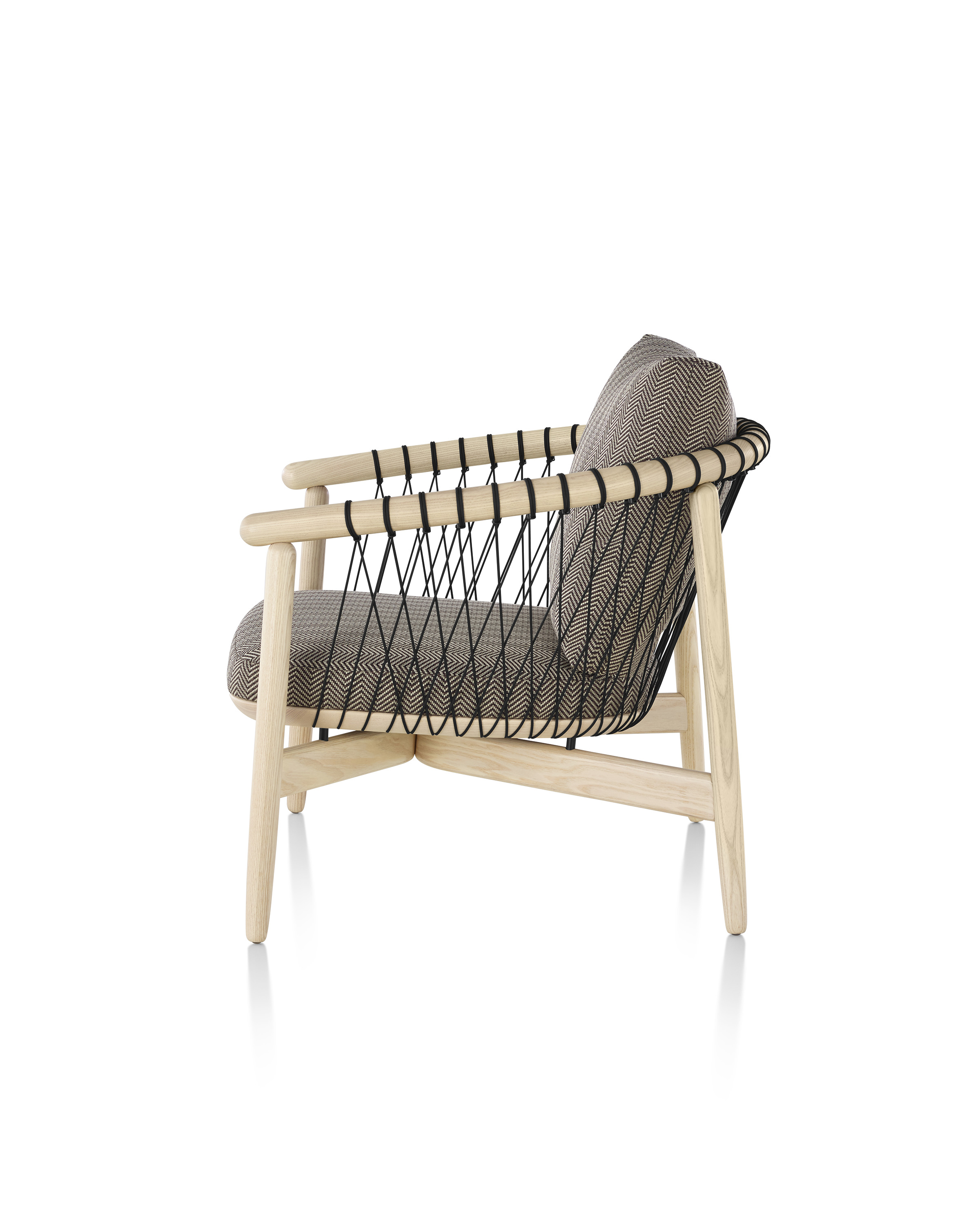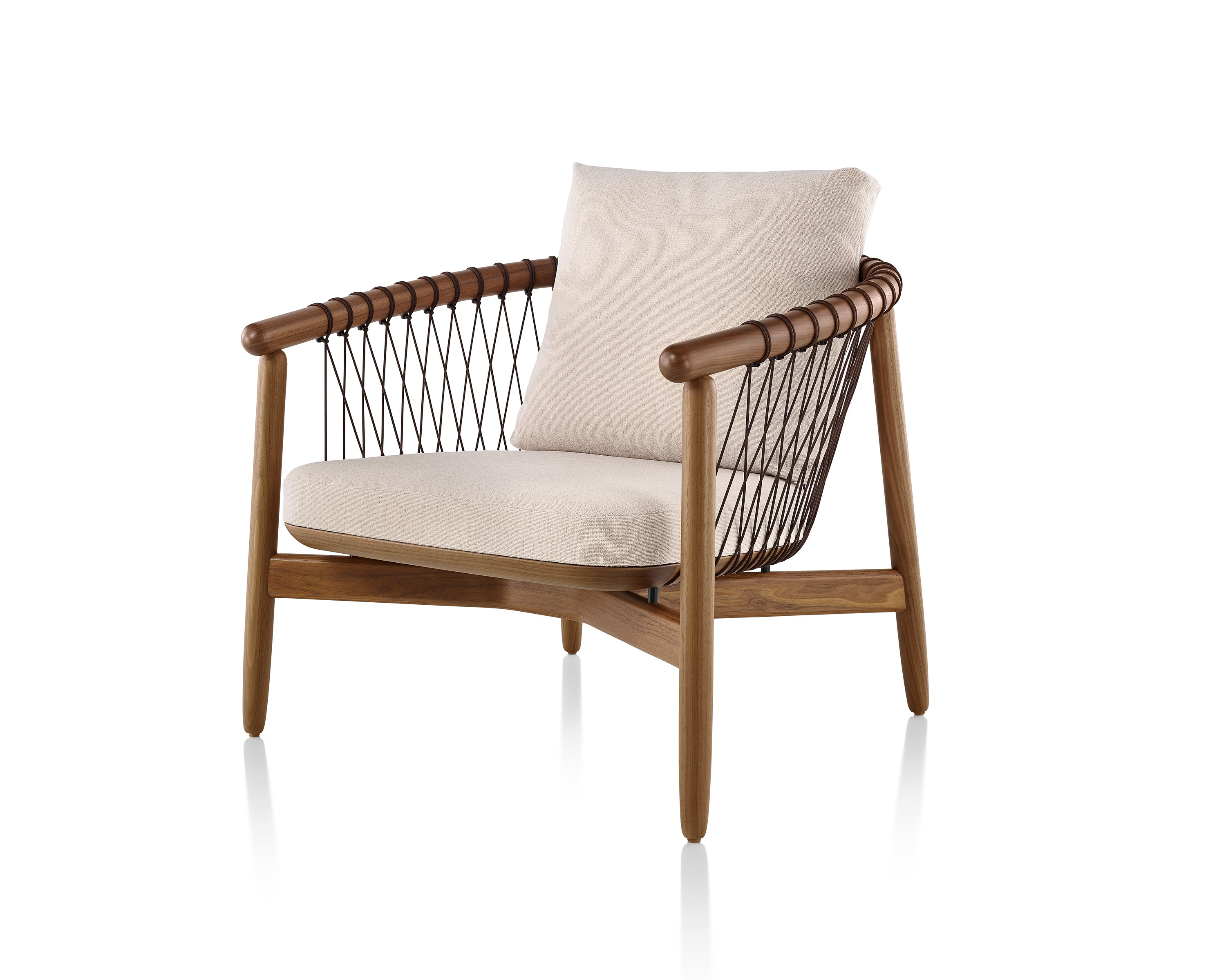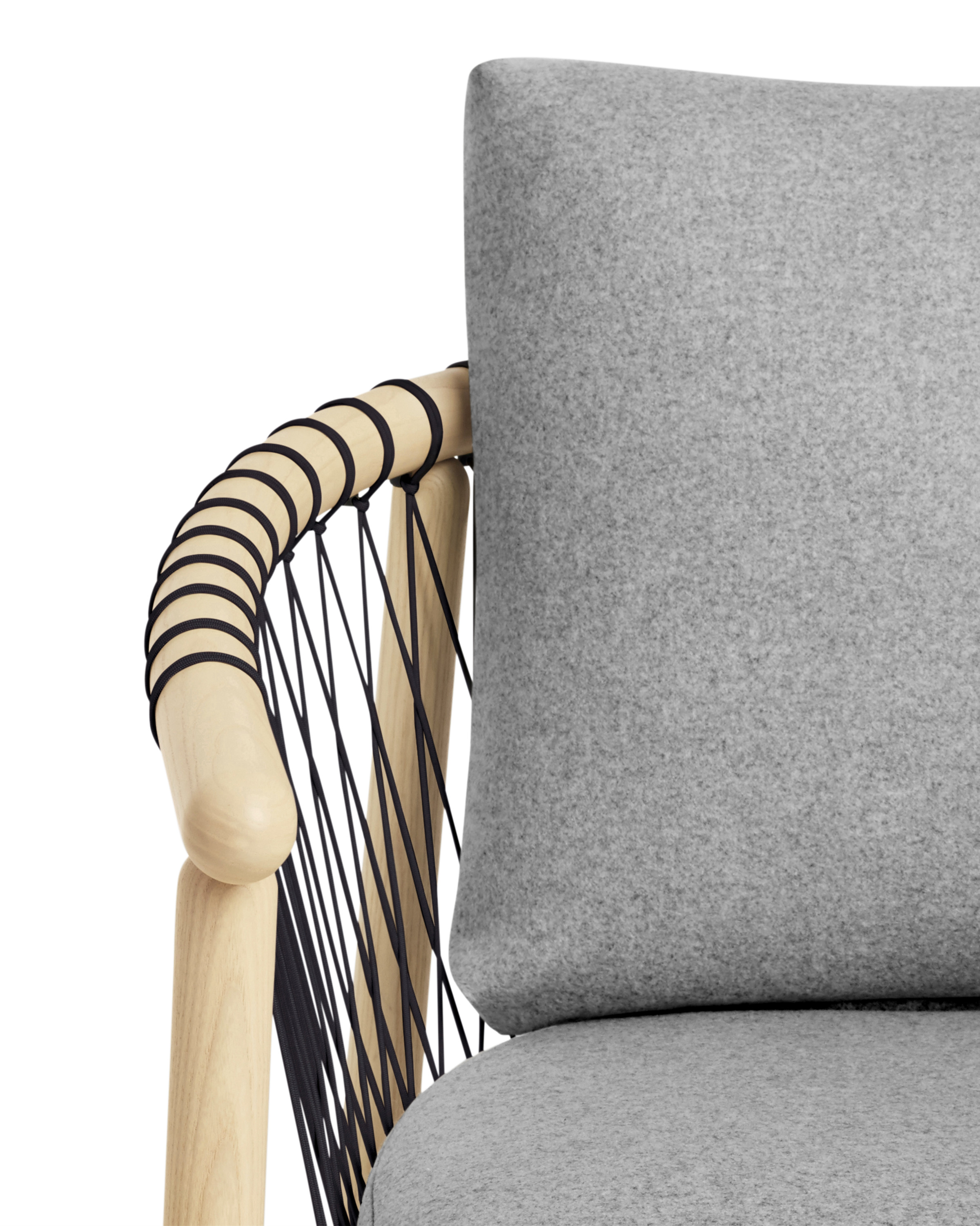 在最大程度上以创造性的方式使用最少的材料,十字头椅采用了手工和技术来达到迷人的精致效果。这把椅子既轻便又透明,非常容易拉起来与桌子边的人聊天,也很容易在鸡尾酒桌周围放松。降落伞绳索有四种颜色可供选择;在一系列盖革纺织品中,框架要么是灰,要么是胡桃。