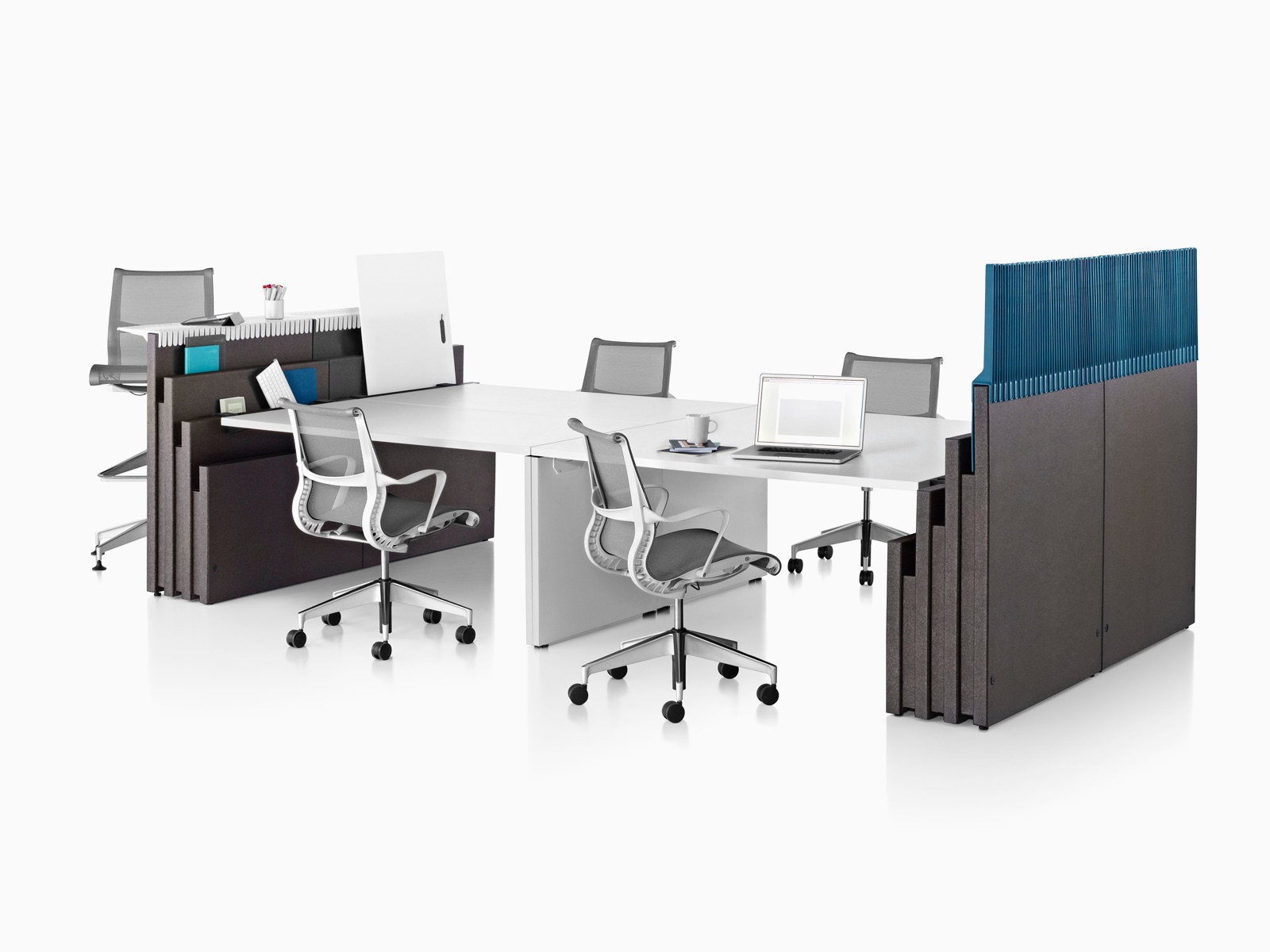 Metaform Portfolio可让您根据活动和需要轻松布置您周围的环境。 可以营造一个用于团队召开非正式会议的区域,或者在需要私密空间的情况下,布置一个您的所有个人物品和工具正好位于随手可及之处的工作空间。