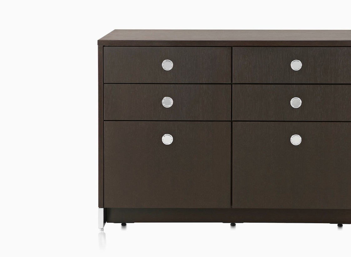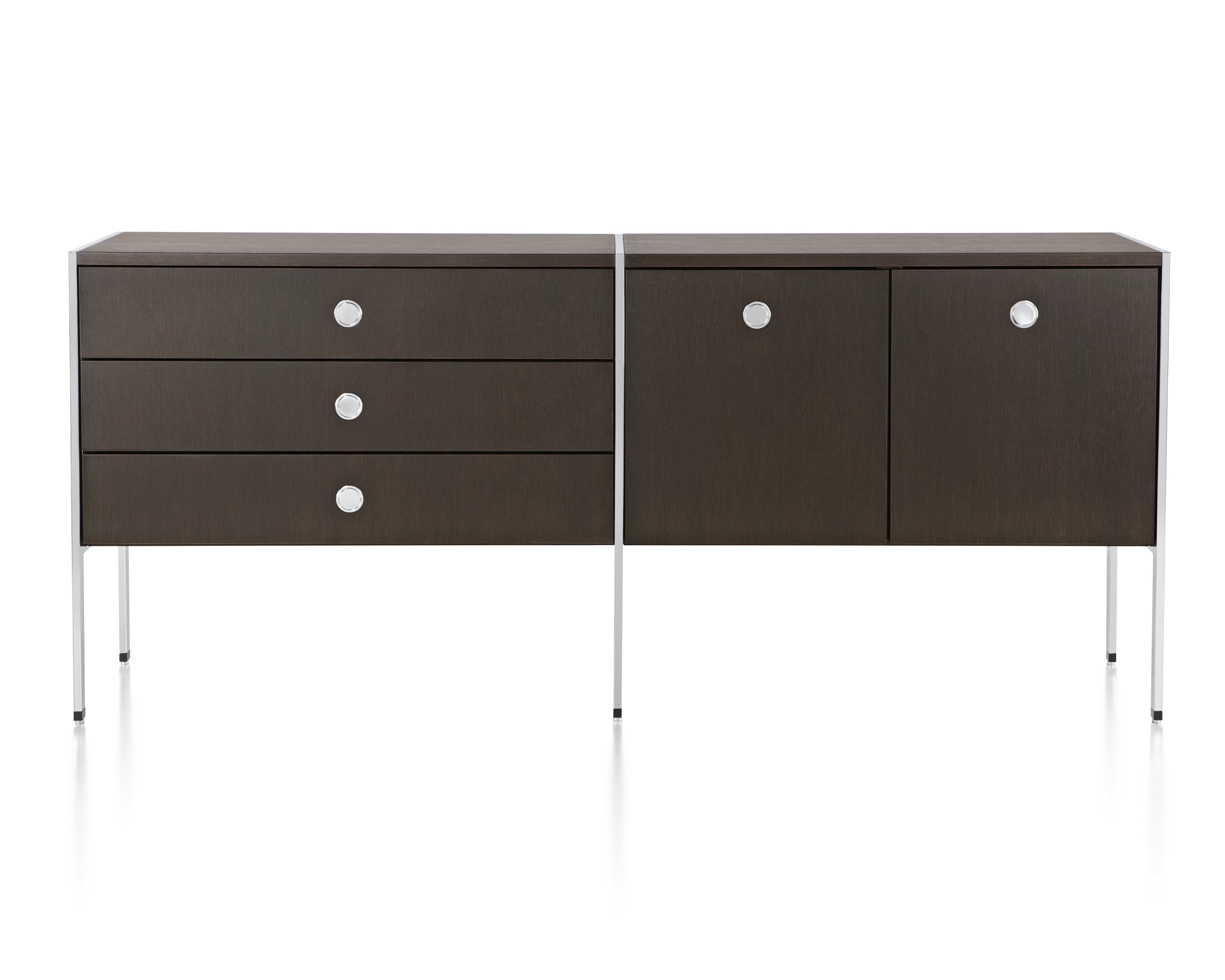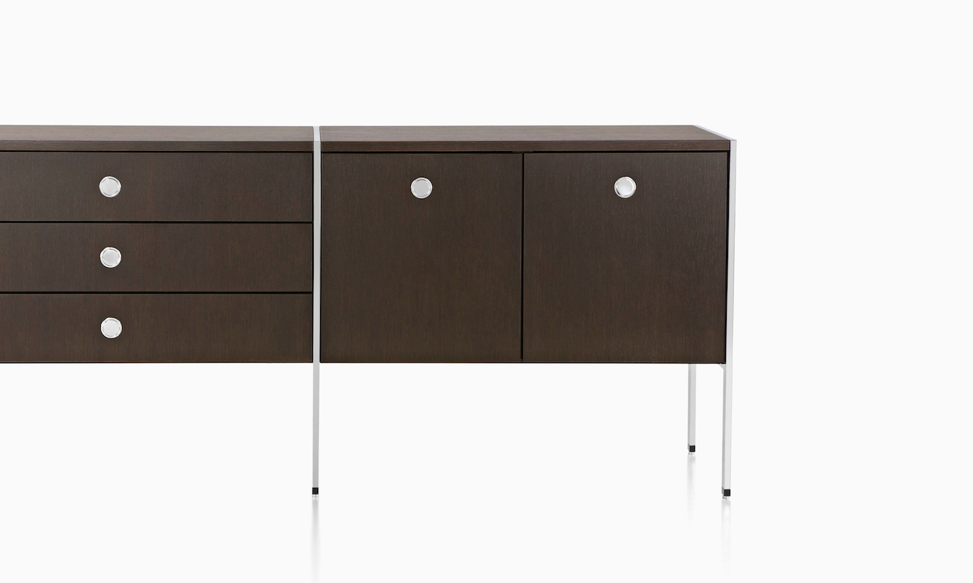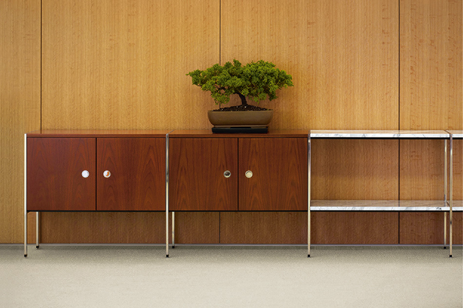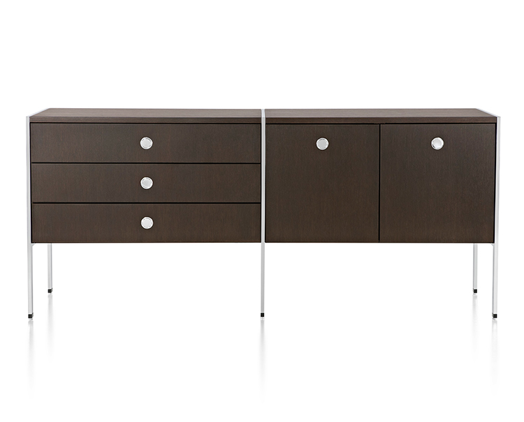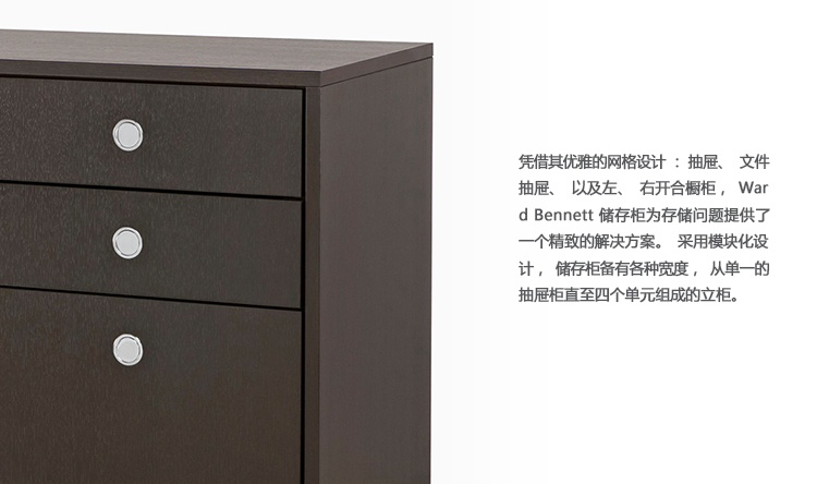凭借其优雅的网格设计:抽屉、文件抽屉、以及左、右开合橱柜,Ward Bennett Sled底座储存柜为存储问题提供了一个精致的解决方案。采用模块化设计,Sled底座储存柜备有各种宽度,从单一的抽屉柜直至四个单元组成的立柜。配有各式各样的饰面、橱柜或抽屉配置,以及各种可能的插件选项,让Sled底座储存柜能够适应各种用途和环境。单柜和双柜还配有脚轮,可用作移动推柜。